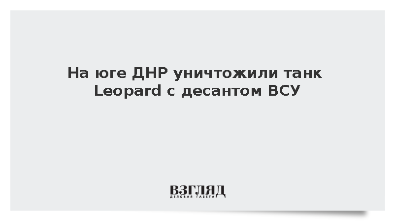 На юге Донецкой народной республики, в районе населенного пункта Бурлацкое, был уничтожен немецкий танк Leopard вместе с десантом Вооруженных сил Украины, передает ТАСС. Силовые структуры сообщили, что техника была ликвидирована в ходе попытки контратаки на российские позиции.