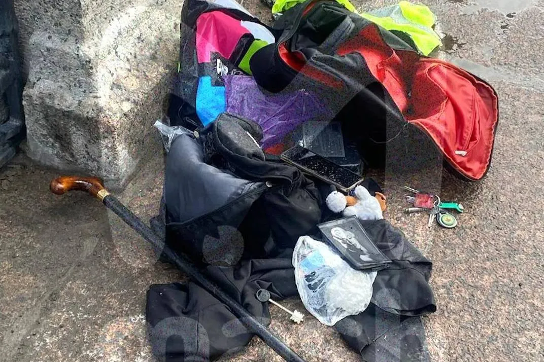 Вещи пассажиров, которые были в салоне упавшего в реку автобуса. Фото © Telegram / Mash на Мойке