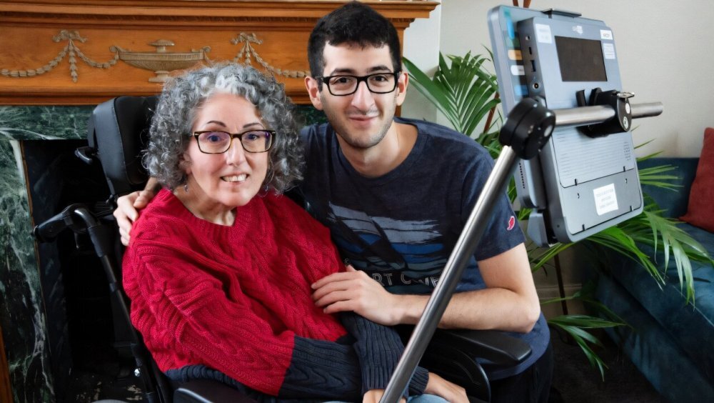 Художница Сара Эзекииль лишилась возможности говорить после того, как в возрасте 34 лет у нее был диагностирован БАС. Тогда, 25 лет назад, она была беременна вторым ребенком. Это прогрессирующее заболевание повреждает нервную систему, приводя некоторых больных к полной потере речи.