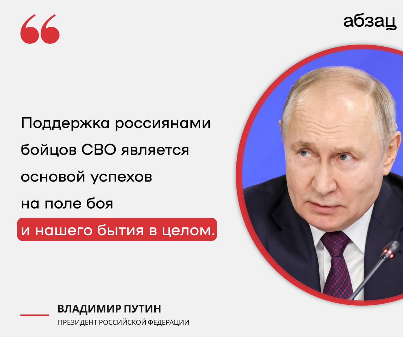 Путин: Поддержка россиянами бойцов СВО является основой успехов на поле боя и нашего бытия в целом