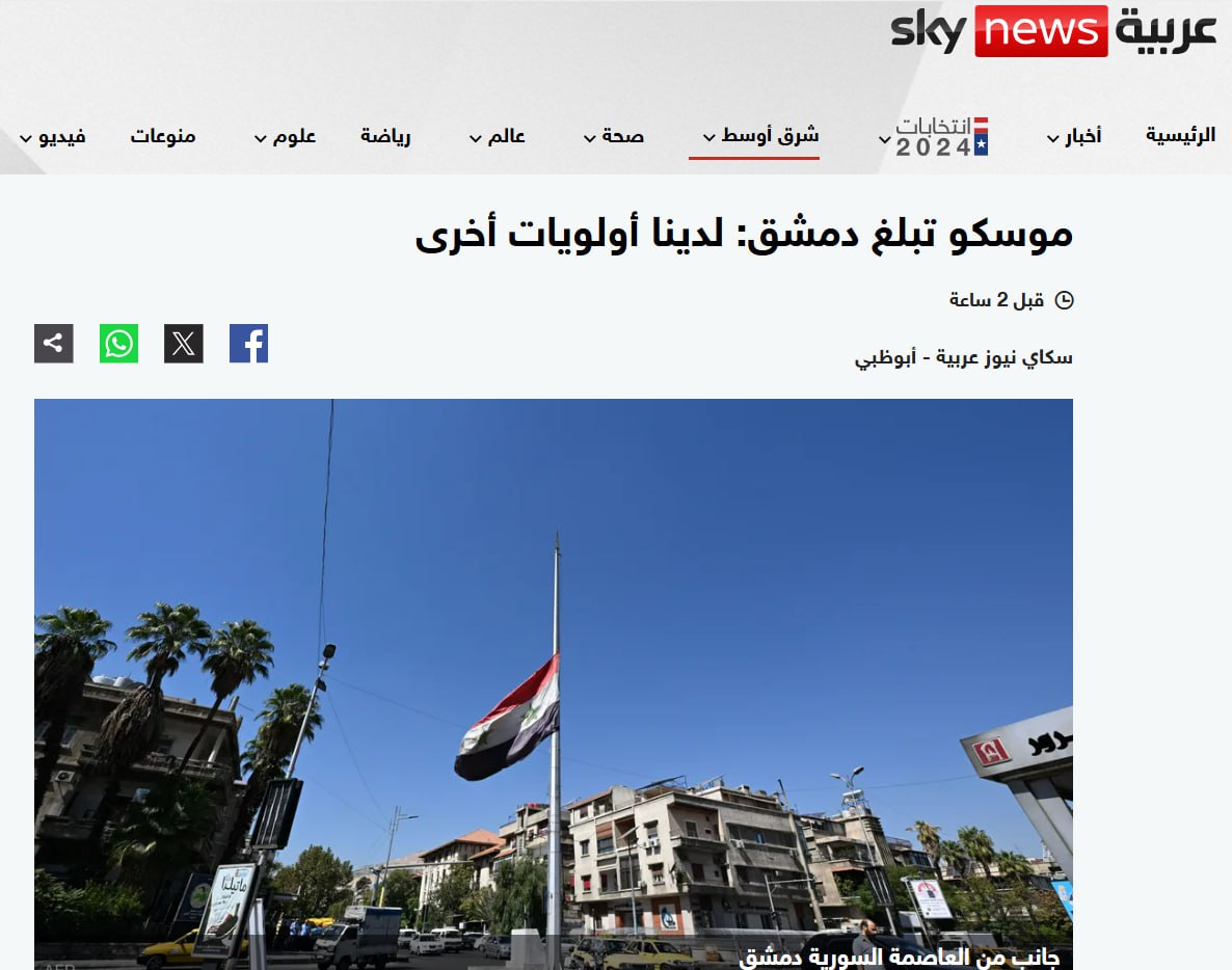 🇷🇺🇸🇾 Россия сообщила Дамаску об ограниченном вмешательстве, в настоящее время у неё другие приоритеты — Sky News Arabia