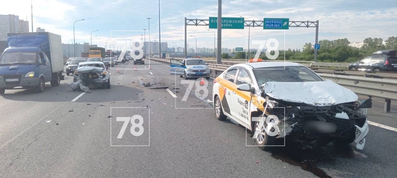 ДТП с участием четырех автомобилей произошло на 30-м км внутреннего кольца (в районе Мурино). По информации 👾, на трассе машины столкнулись в попутном направлении.