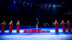 Церемония награждения на финале Гран-при России по фигурному катанию не обошлась без забавного момента. Сильнейшие пары страны вышли получать свои медали, но чемпионка мира Анастасия Мишина внезапно выехала на лед одна. О том, где же находится ее партнер Александр Галлямов, не догадывался никто. Вместе с этим девушка спокойно стояла в лучах славы на верхней ступеньке пьедестала.
