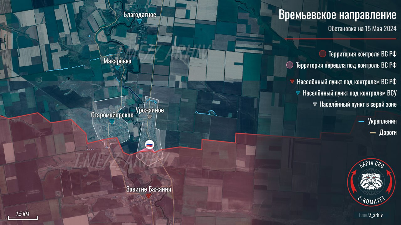 Днем ранее, ВС РФ отработали ТОСом по противнику. Теперь штурмовые группы продвинулись в данной части Урожайного.