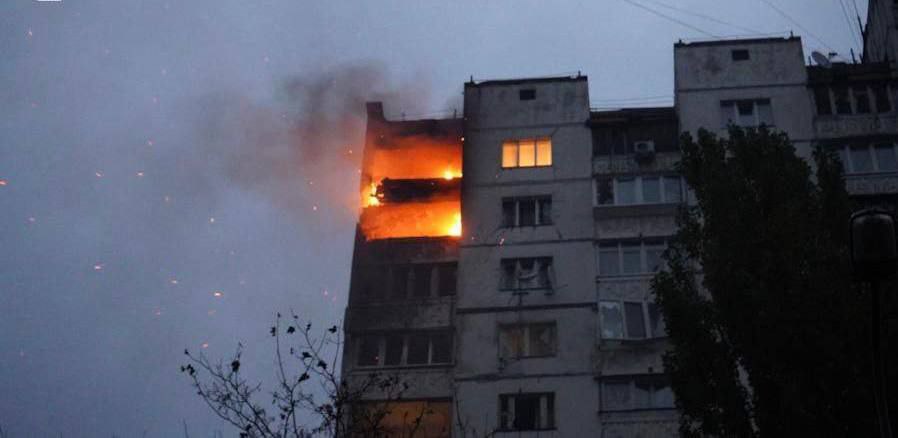 ▪️В Святошинском районе произошло возгорание и частичное разрушение в квартирах на двух верхних этажах 16-этажного дома.