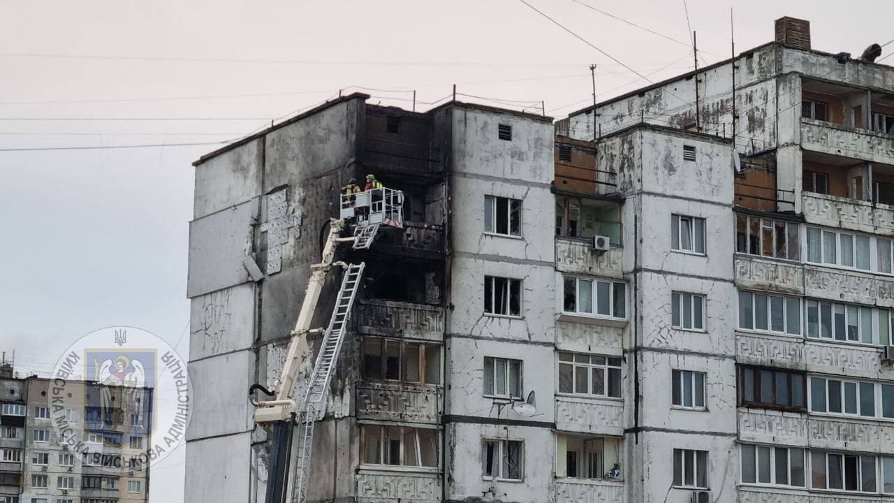 ▪️В Днепровском районе столицы зафиксировано падение обломков, из-за чего начался пожар на балконе 9-этажного дома.