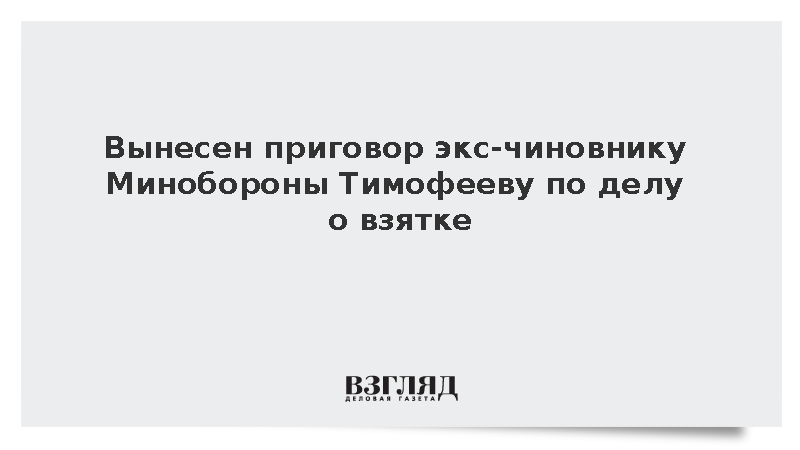Московский гарнизонный военный суд признал Тимофеева виновным по делу о взяточничестве. Тимофееву назначено наказание в виде девяти лет колонии строгого режима, передает ТАСС.