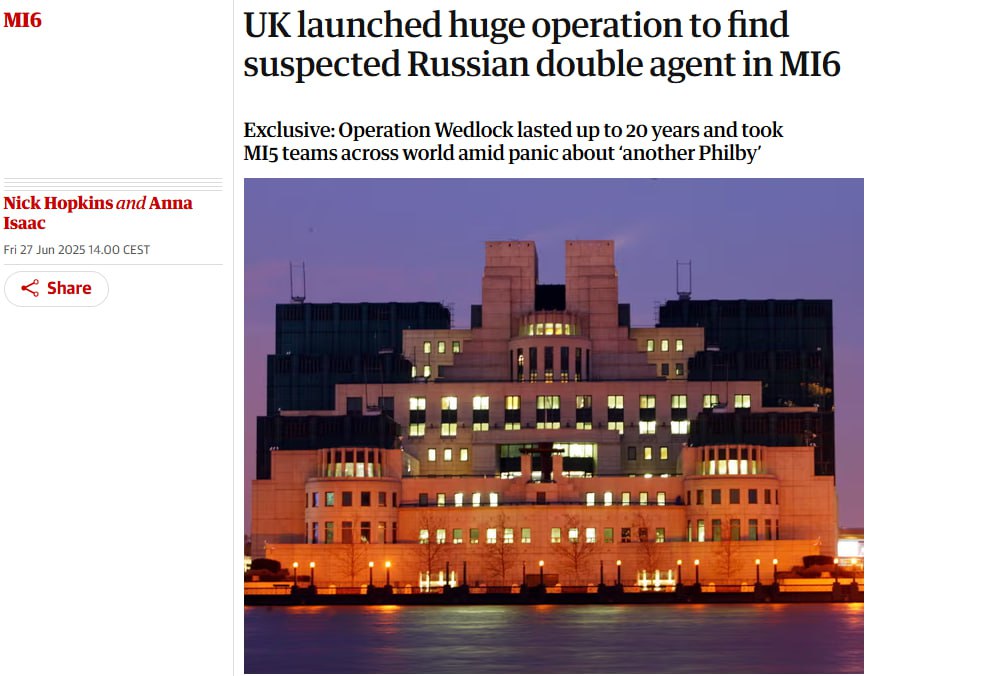 По данным издания, масштабная операция по поиску предполагаемого «крота» в британской разведке началась ещё в 1990-х и проходила под кодовым названием «Операция Ведлок».