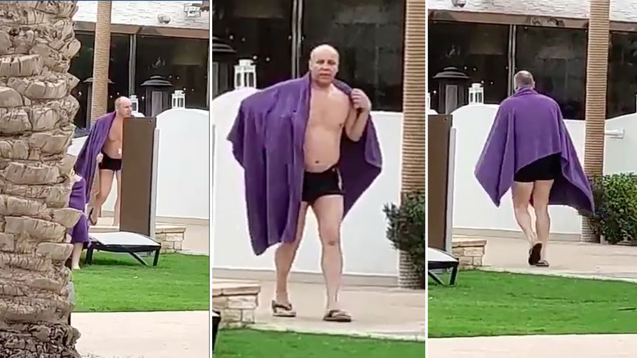В сети появились фотографии, на которых изображен полуголый Парубий в плавках с полотенцем.