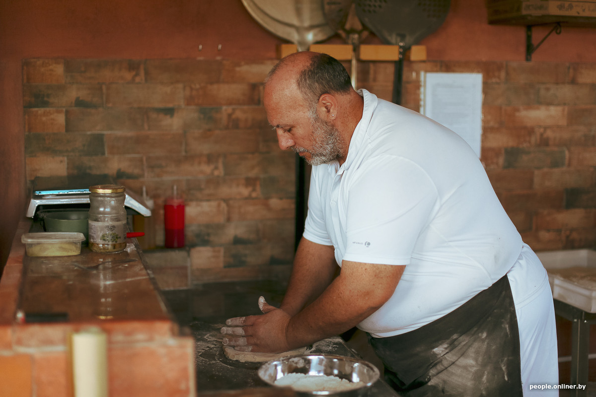 Паоло родился в Апулии. Бо́льшую часть жизни о существовании белорусской деревни под выразительным названием Кривая Береза он не подозревал — а сейчас готовит для местных жителей настоящую итальянскую пиццу в дровяной печи. О каждом из ингредиентов шеф готов говорить часами. Конечно, мы не удержались и побеседовали с итальянцем о любви к еде, а еще о жизни в уединении, семье и худшем из всех зол — ананасах в пицце.