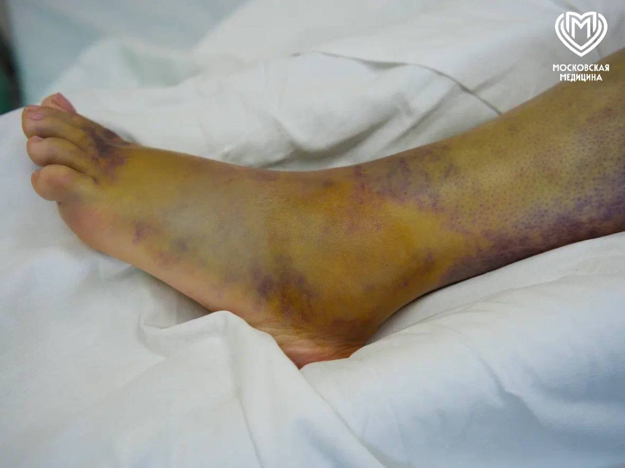 Нога пострадавшей сильно отекла. Пришлось вызывать скорую помощь.