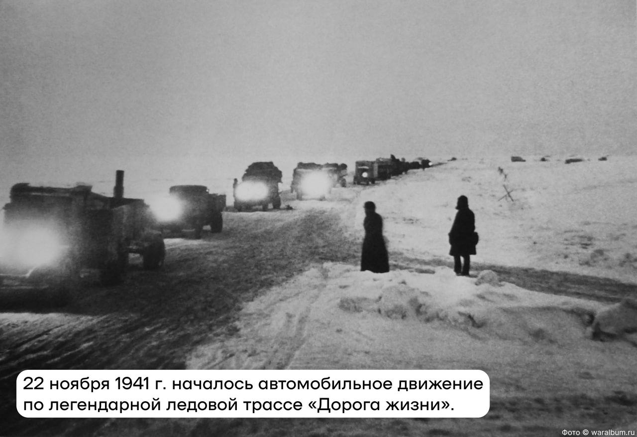 22 ноября 1941 на Ладожском озере началось автомобильное движение по ледовой трассе «Дорога жизни»