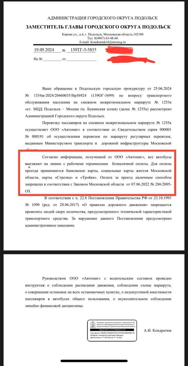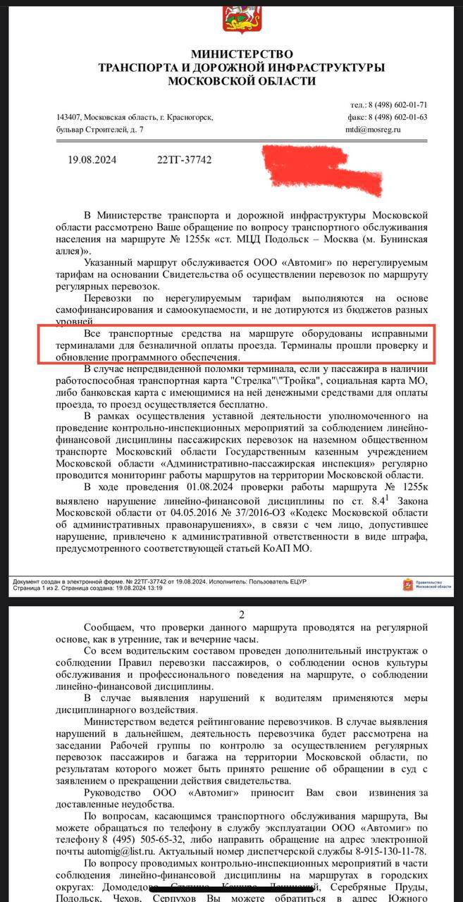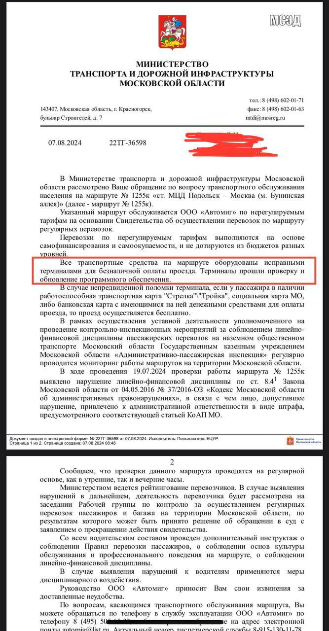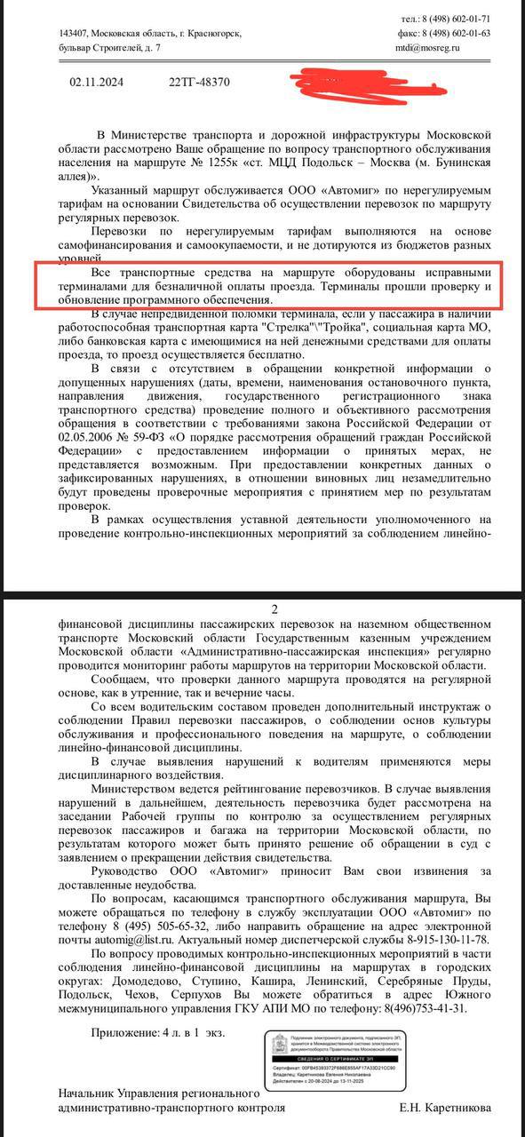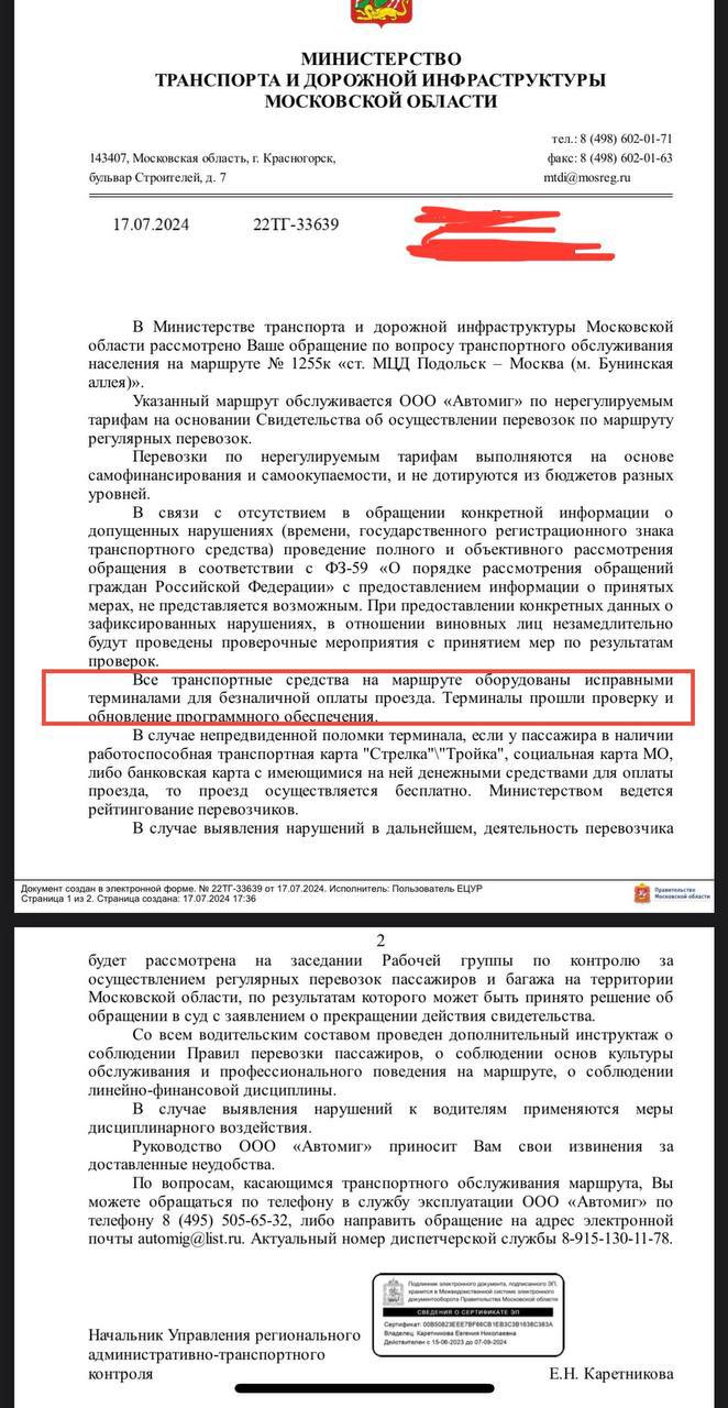 Ведомства и перевозчики заявляют о наличии терминалов для оплаты проезда картой, но фото и видео-факты говорят об обратном: терминалов на маршрутах Щербинки нет.