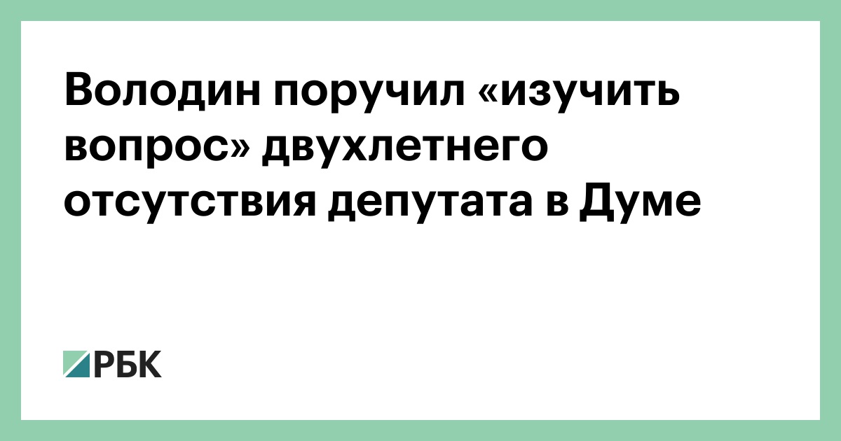 Председатель Госдумы Вячеслав Володин поручил комиссии по регламенту и комиссии по мандатным вопросам «изучить вопрос» по депутату от ЛДПР Юрию Напсо из-за его двухлетнего отсутствия в Госдуме, сообщил РБК председатель комиссии по мандатным вопросам Отари Аршба.