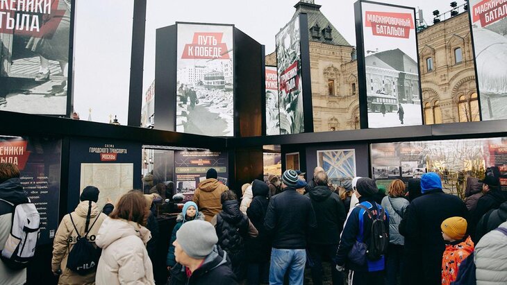 На Красной площади открылся музей под открытым небом "Город живых историй", посвященный 84-й годовщине военного парада 1941 года. Экспозиция, несмотря на будний день, привлекла множество посетителей разных поколений.