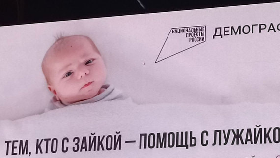 Российским семьям с помощью рекламной кампании напомнили о государственных мерах поддержки, на которые могут рассчитывать пары, решившие завести ребенка. В городах в рамках национального проекта «Демография» появилась наружная реклама. На баннерах изображен младенец и текст: «Тем, кто с зайкой, – помощь с лужайкой: семейная ипотека, материнский капитал, места в яслях, выплаты на детей».