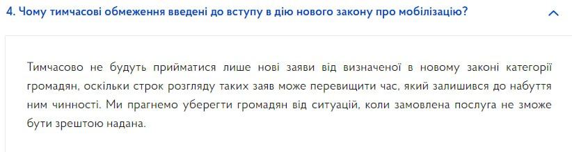 ❗️В пояснении говорится, что если украинцы призывного возраста обновят данные в ТЦК, то им будет предоставлен полный доступ к услугам.
