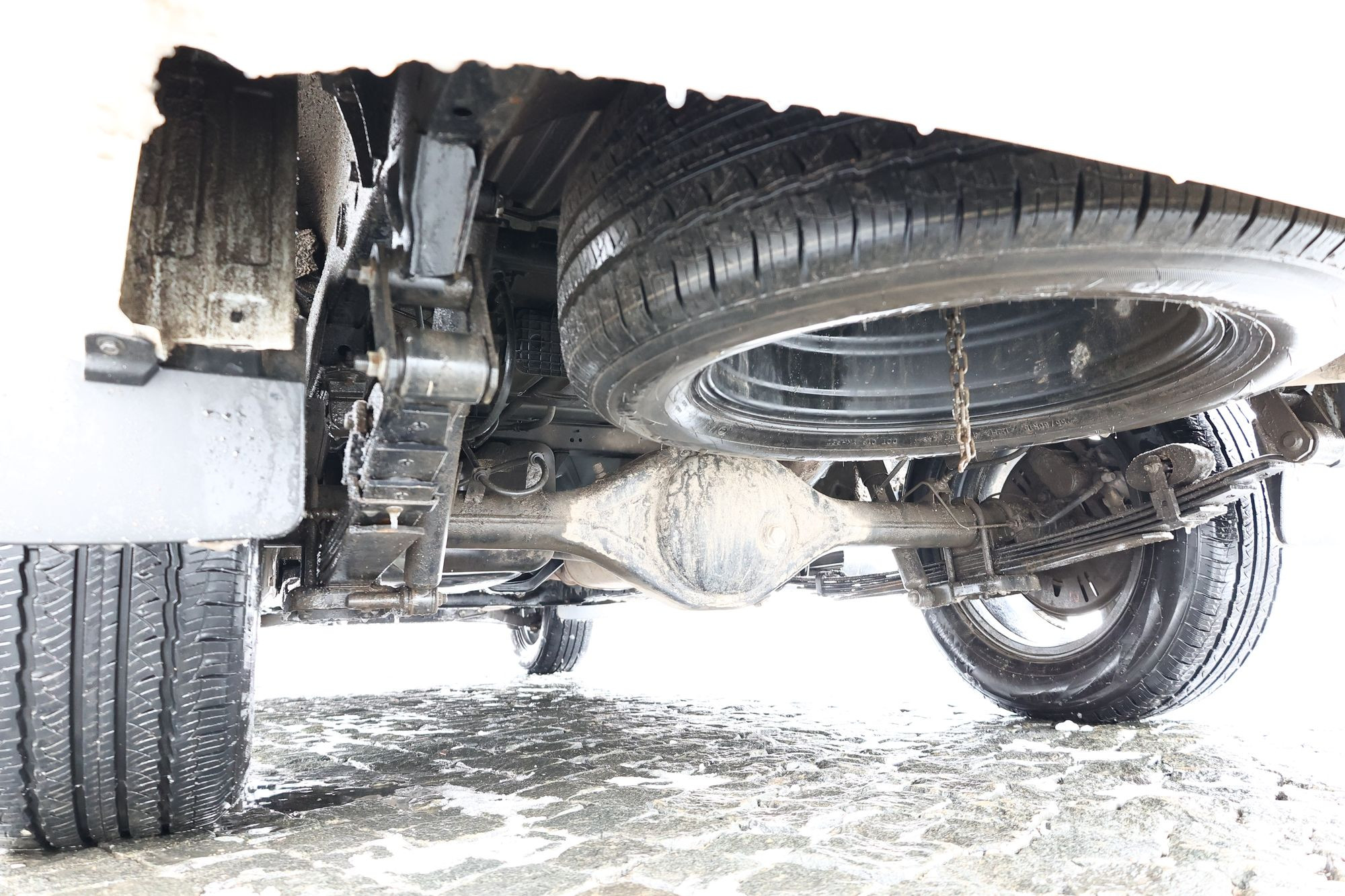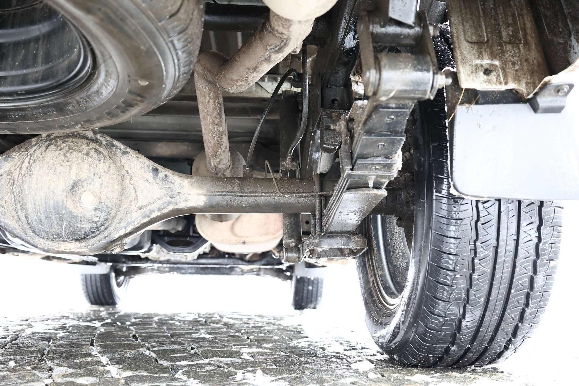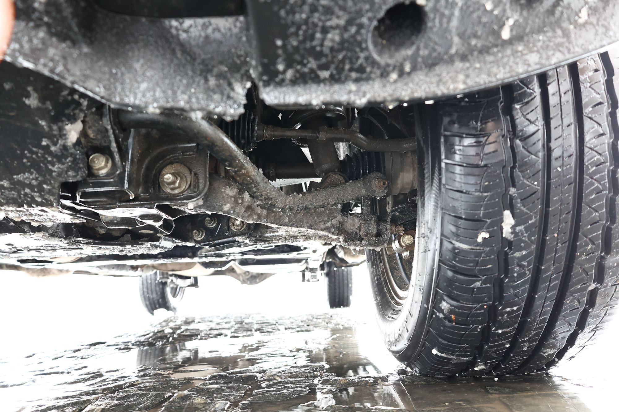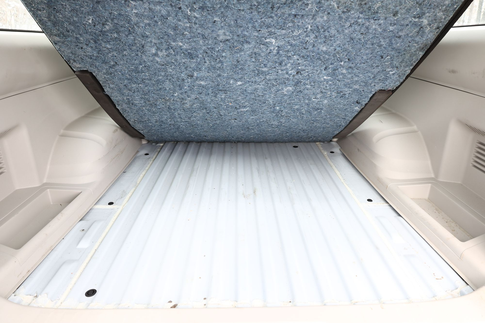 Багажник под стать пикапу: жёсткий пластик, пара неглубоких ниш по бокам, плафон на потолке да бюджетный коврик на полу. Под ним – металлический пол, а запасное колесо висит снаружи под днищем. Отсек заканчивается перегородкой, которая разделяет кабину и багажник и крепится к кузову 14 болтами.