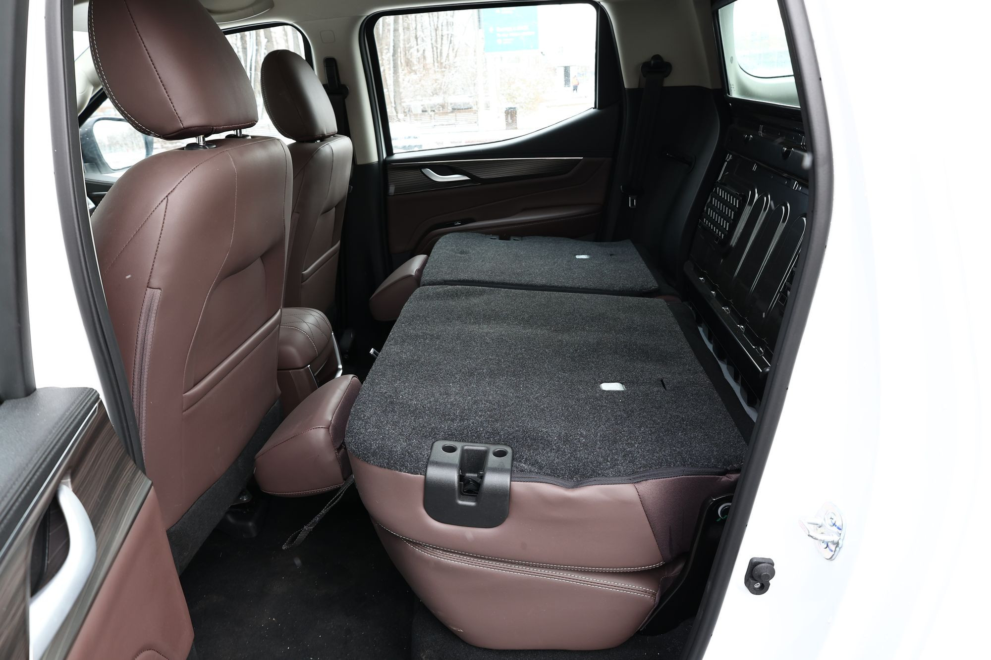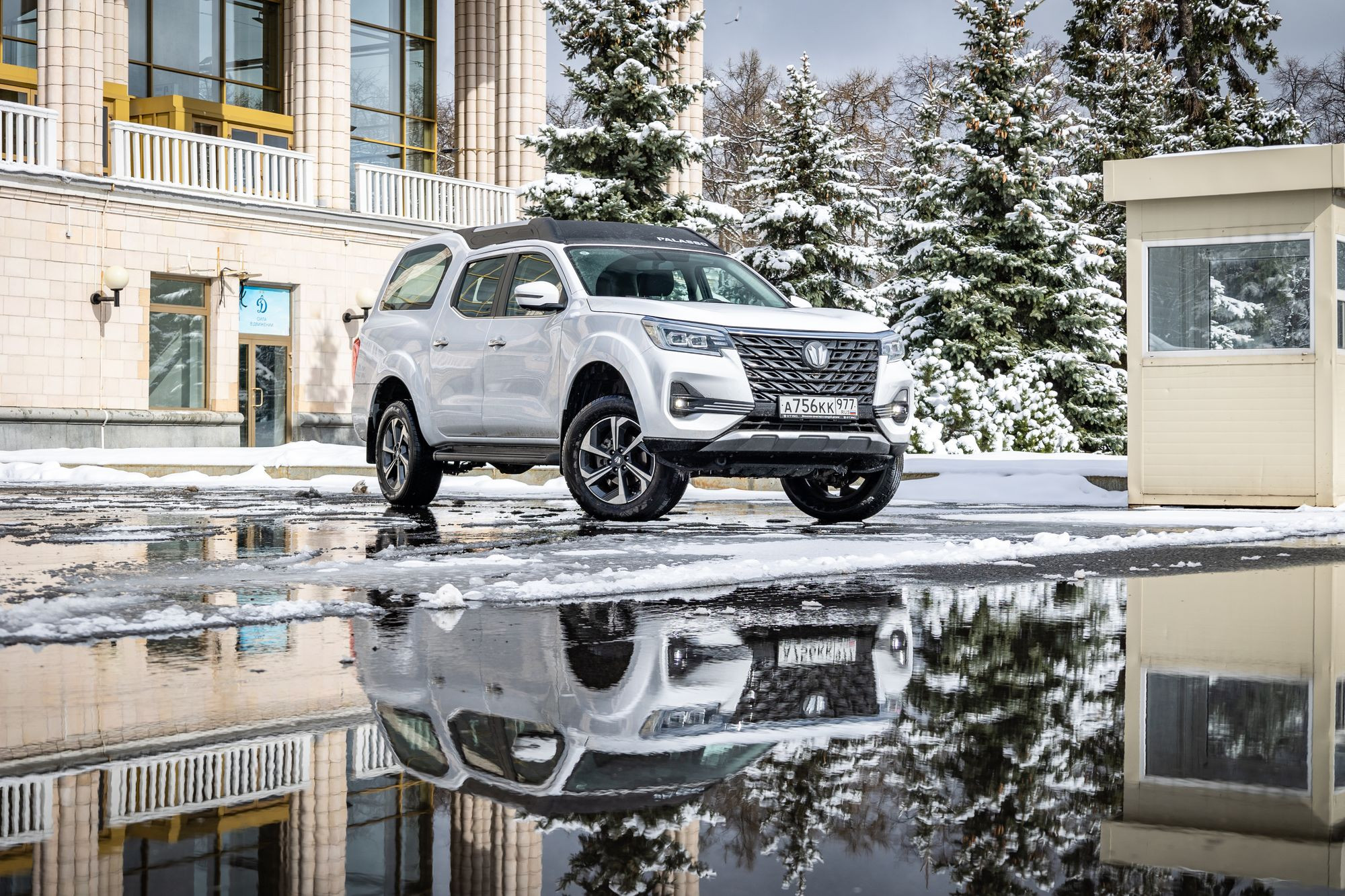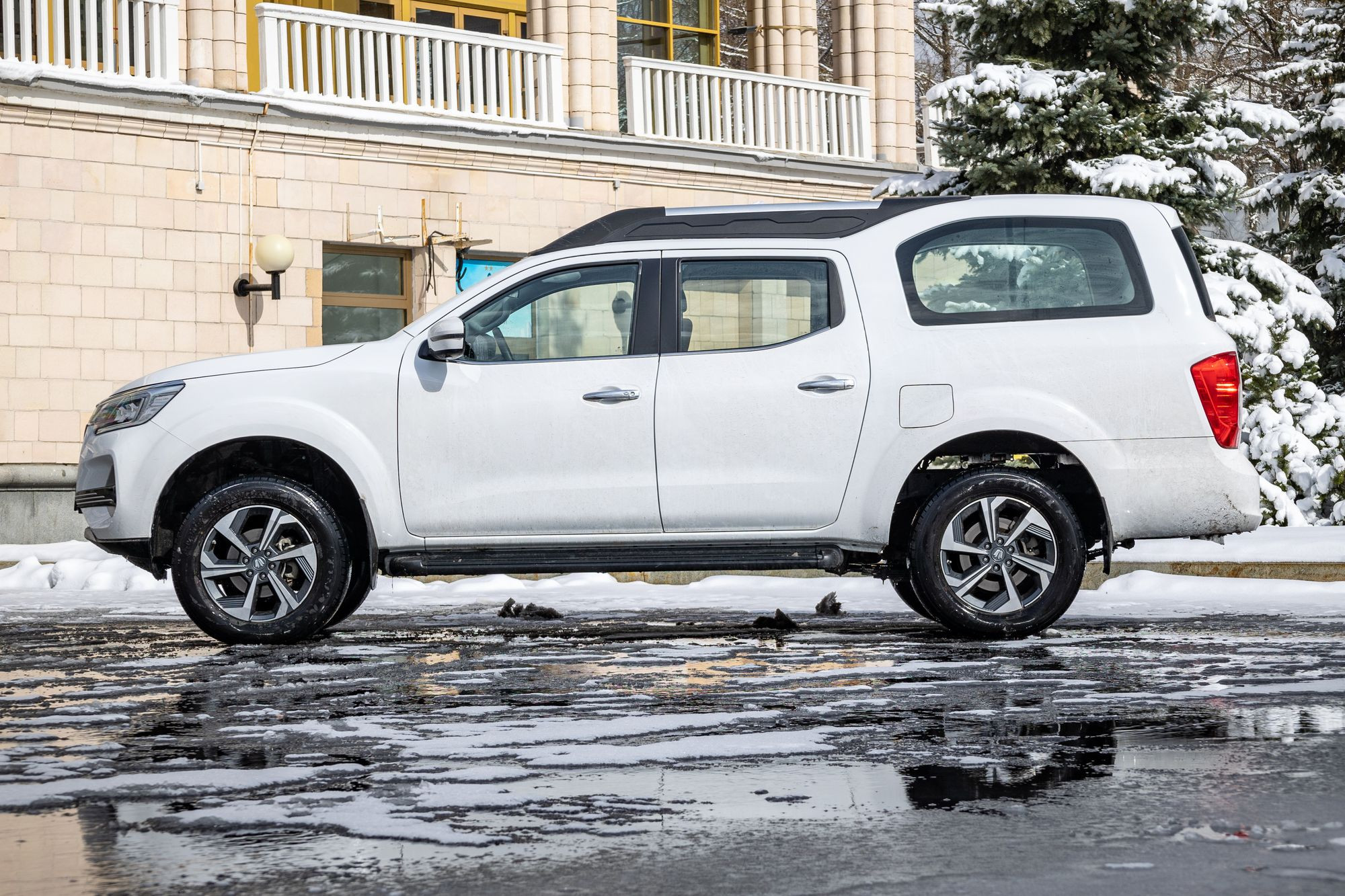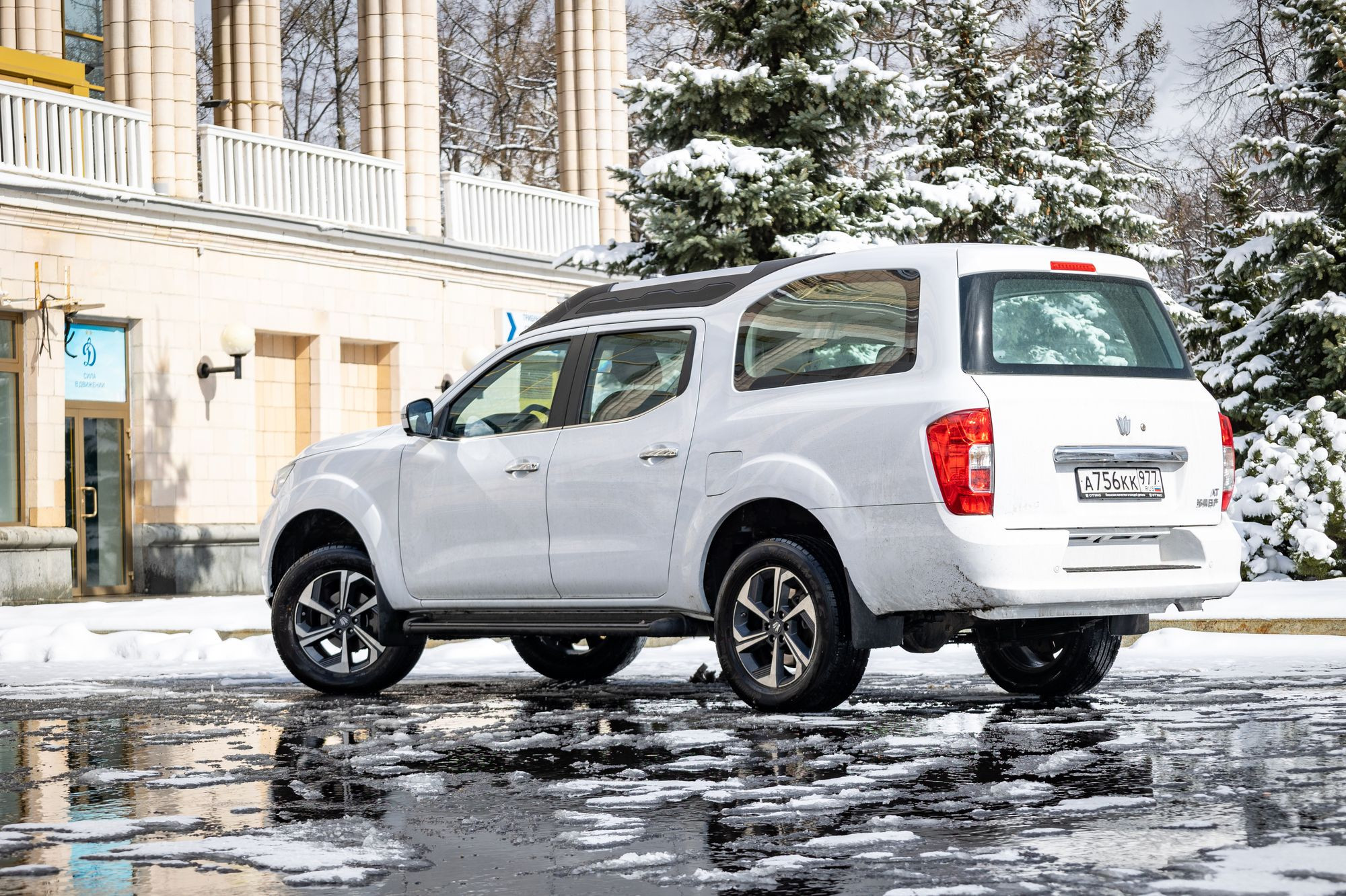 Под капотом шевелит поршнями, увы, не дизель, а 2,0-литровый бензиновый турбомотор Mitsubishi 4K31, который развивает 218 сил. Коробка передач – 8-ступенчатый автомат 8HP50 от ZF, правда, тоже китайской сборки. Ну и если спереди здесь независимая подвеска, то сзади – неразрезной мост на рессорах, как и подобает пикапу. Передняя ось подключается жёстко.