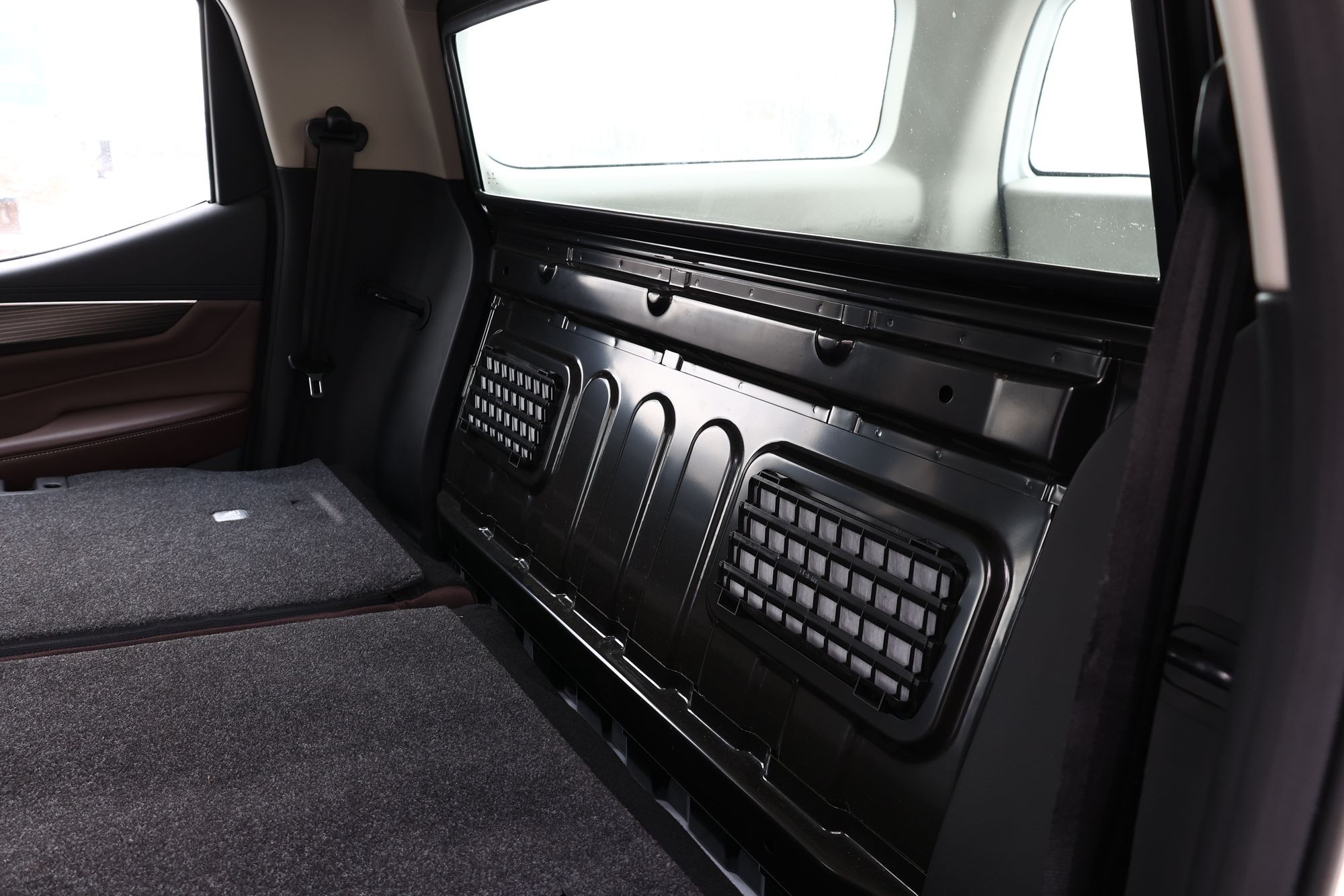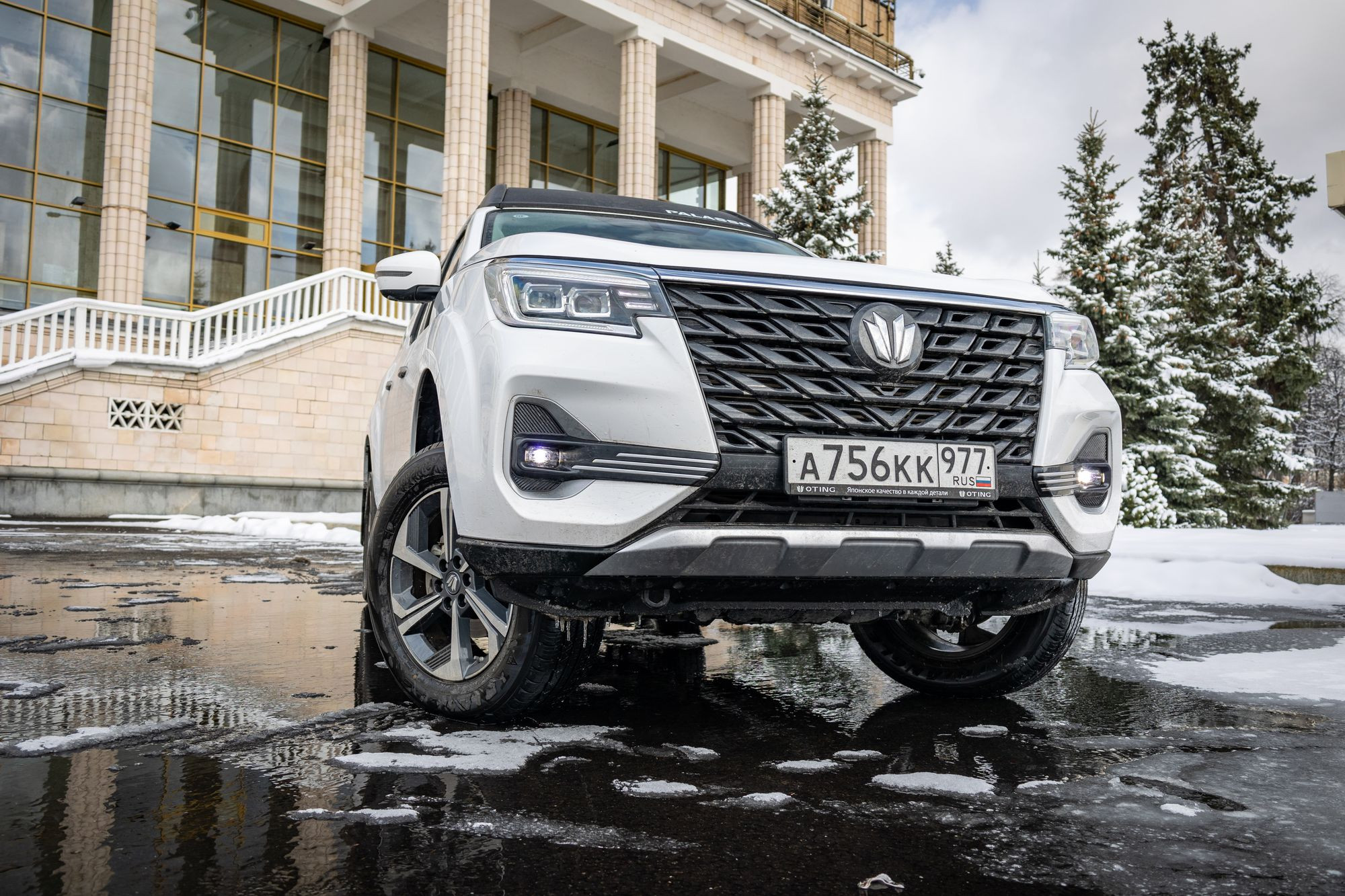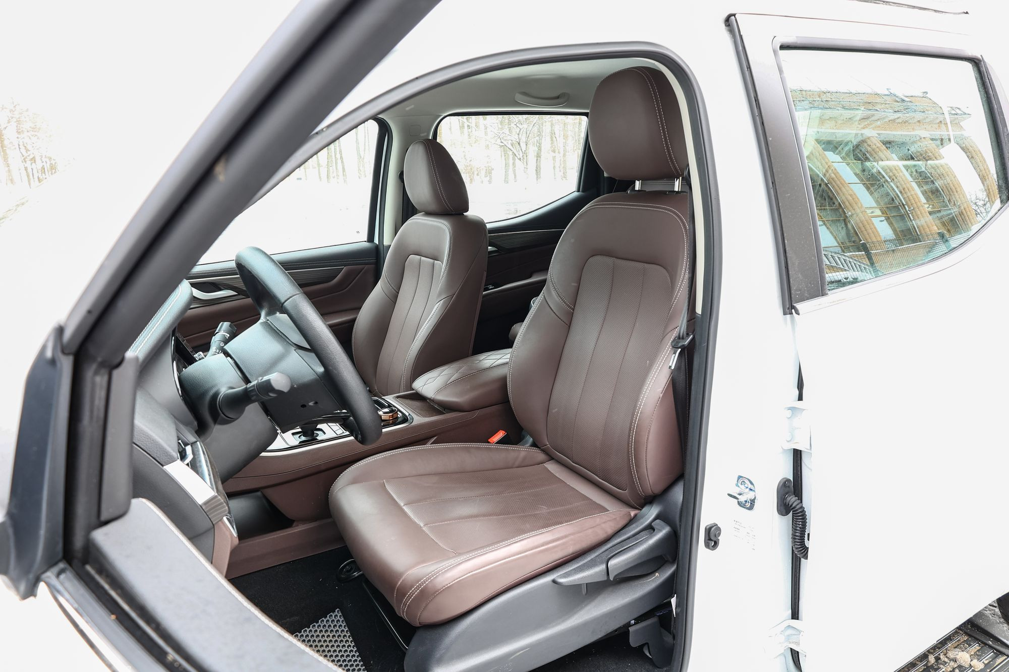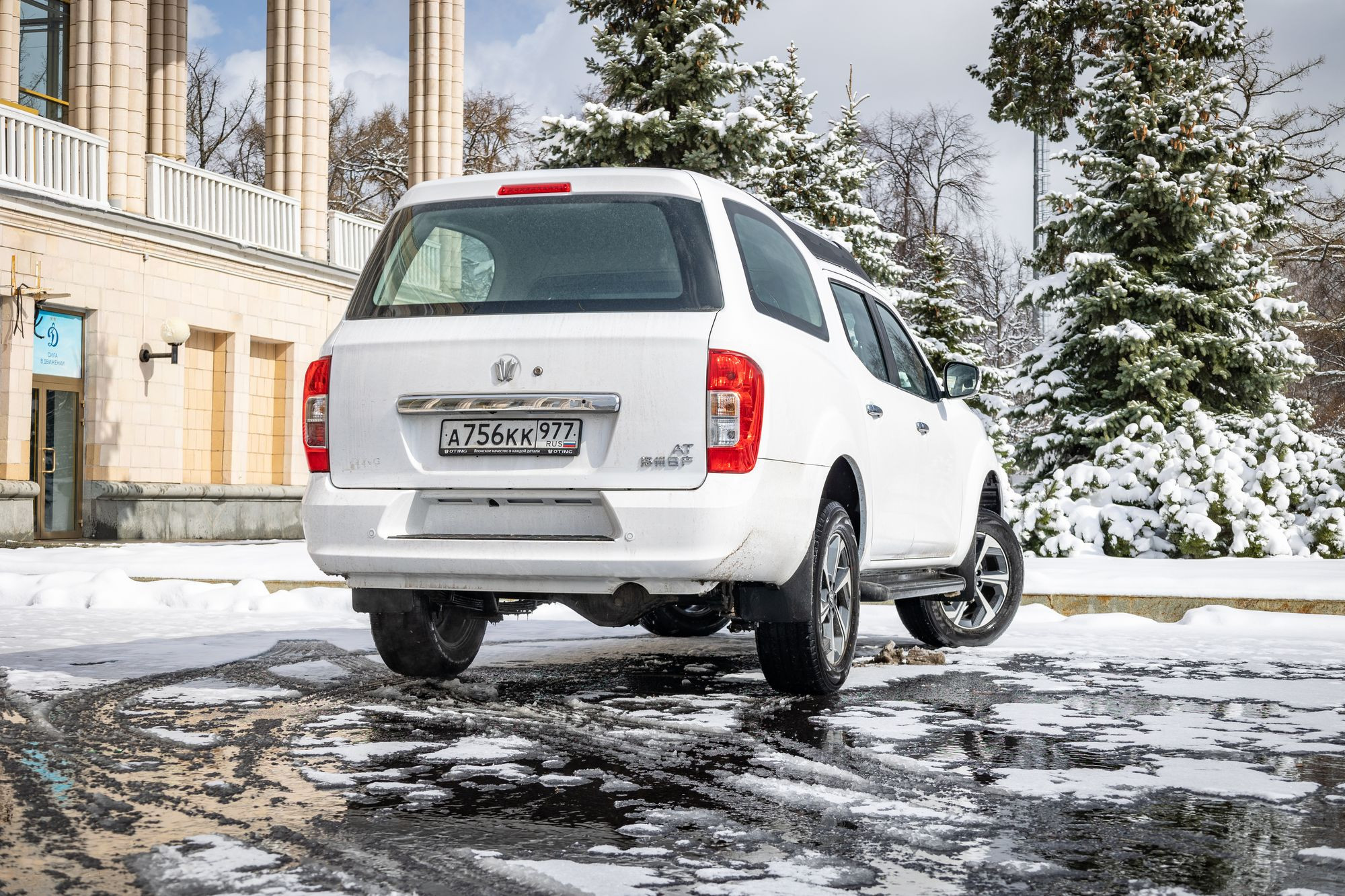 Под капотом шевелит поршнями, увы, не дизель, а 2,0-литровый бензиновый турбомотор Mitsubishi 4K31, который развивает 218 сил. Коробка передач – 8-ступенчатый автомат 8HP50 от ZF, правда, тоже китайской сборки. Ну и если спереди здесь независимая подвеска, то сзади – неразрезной мост на рессорах, как и подобает пикапу. Передняя ось подключается жёстко.
