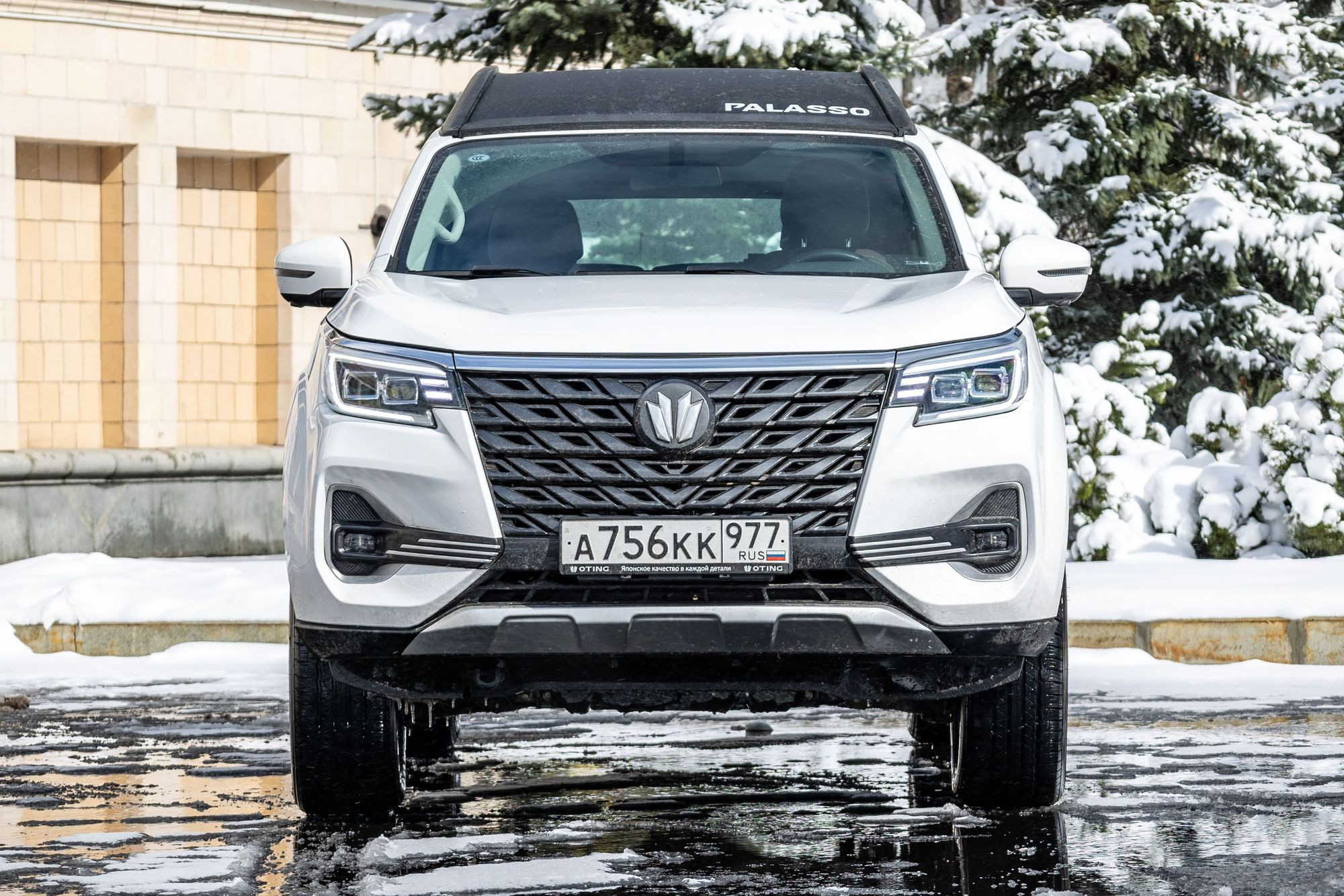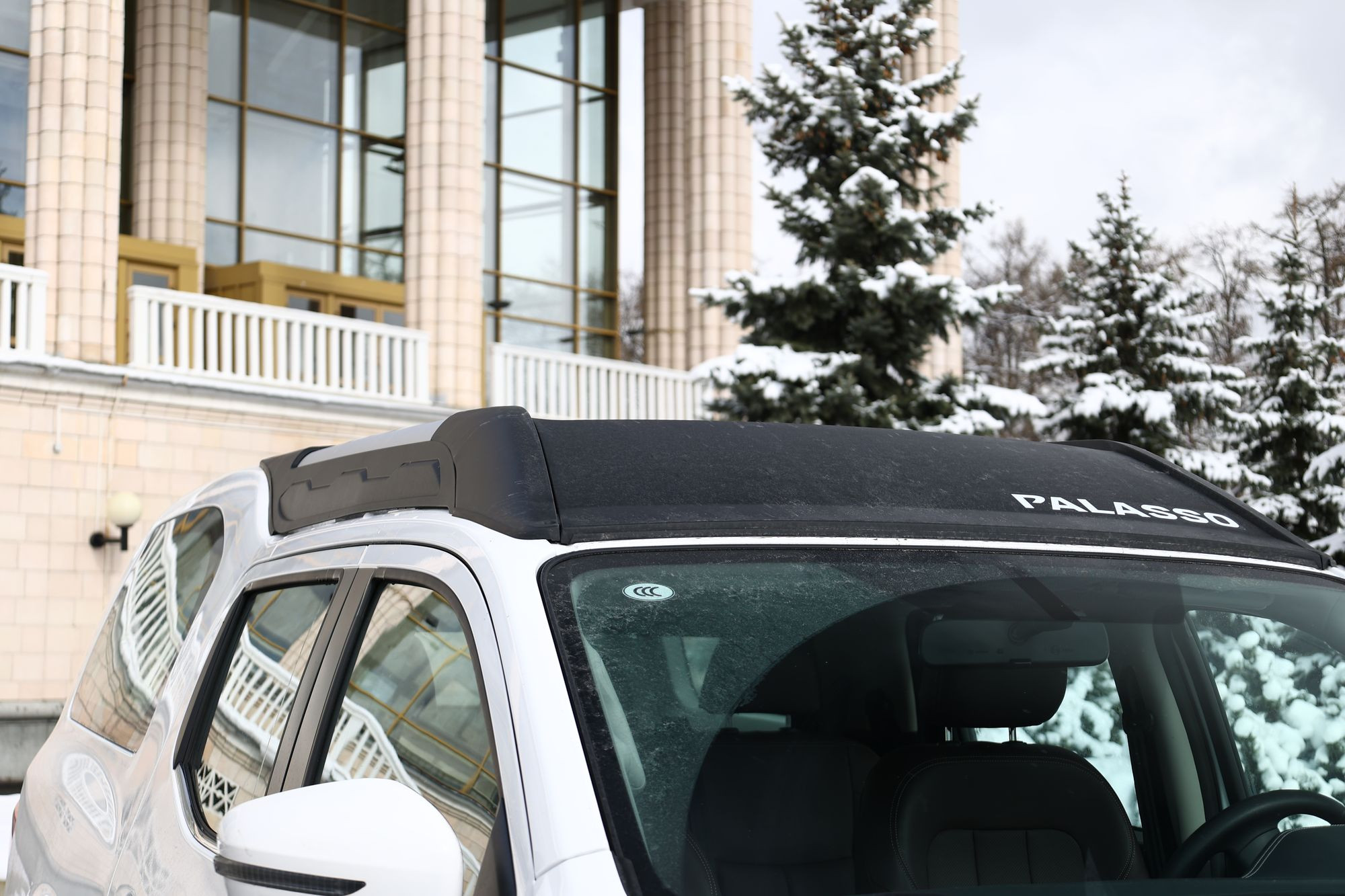 Выглядит Palasso, конечно… так себе. Видели катафалки на базе легковушек? Вот и здесь похожие пропорции. Проблема в том, что гигантский колпак над грузовой платформой зачем-то сделали гораздо выше уровня крыши пассажирской кабины. А чтобы замаскировать эту ступеньку, на крышу прикрутили чёрную пластиковую накладку наподобие обтекателя у грузовиков.