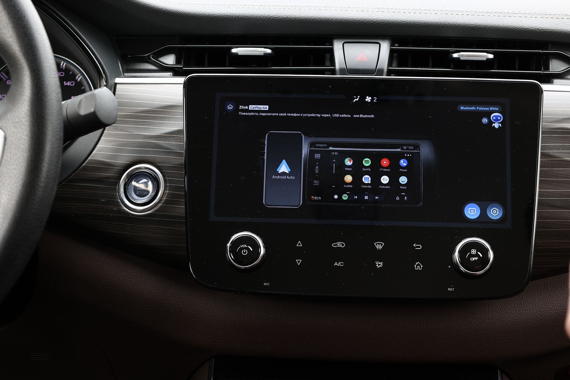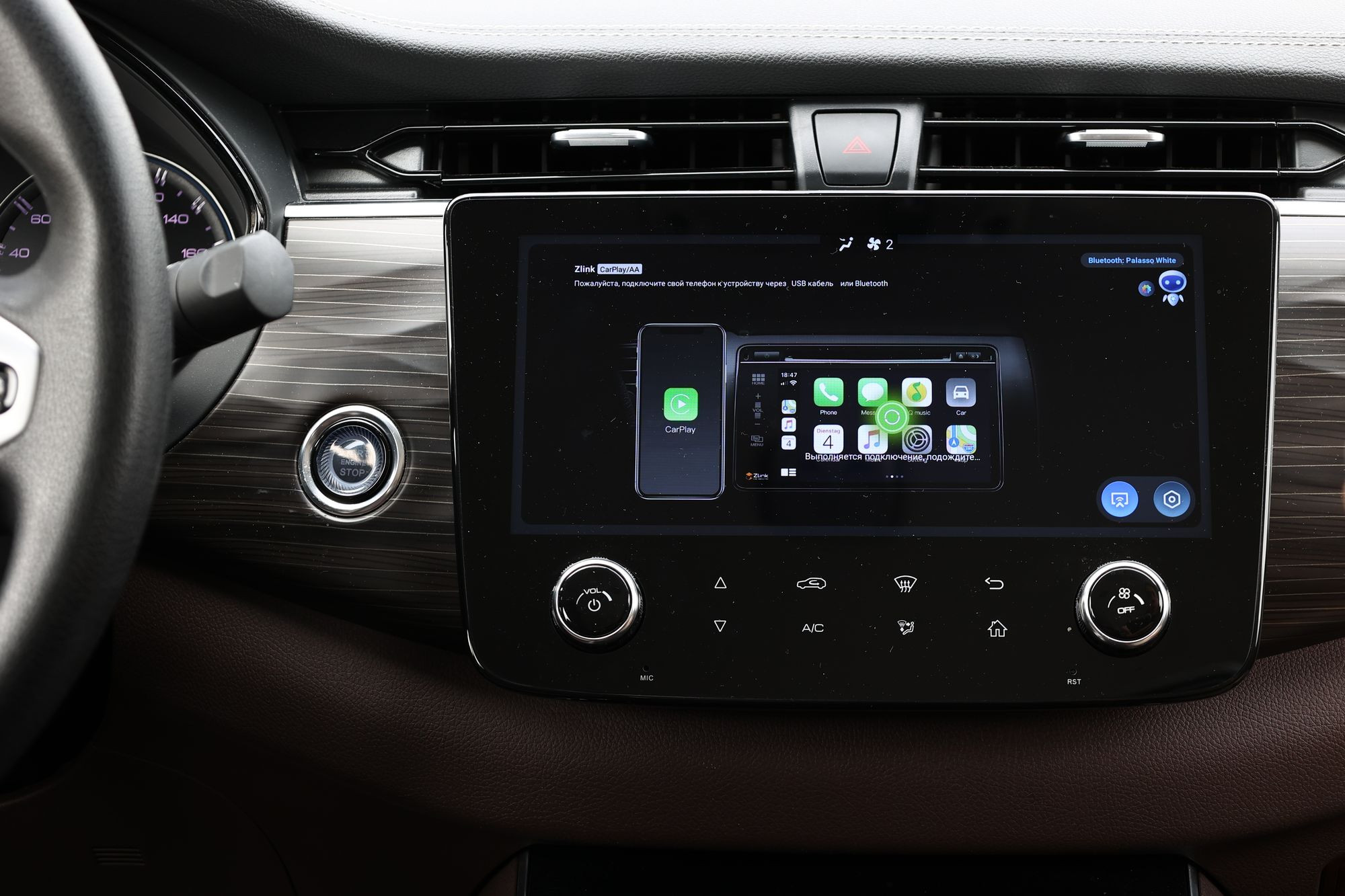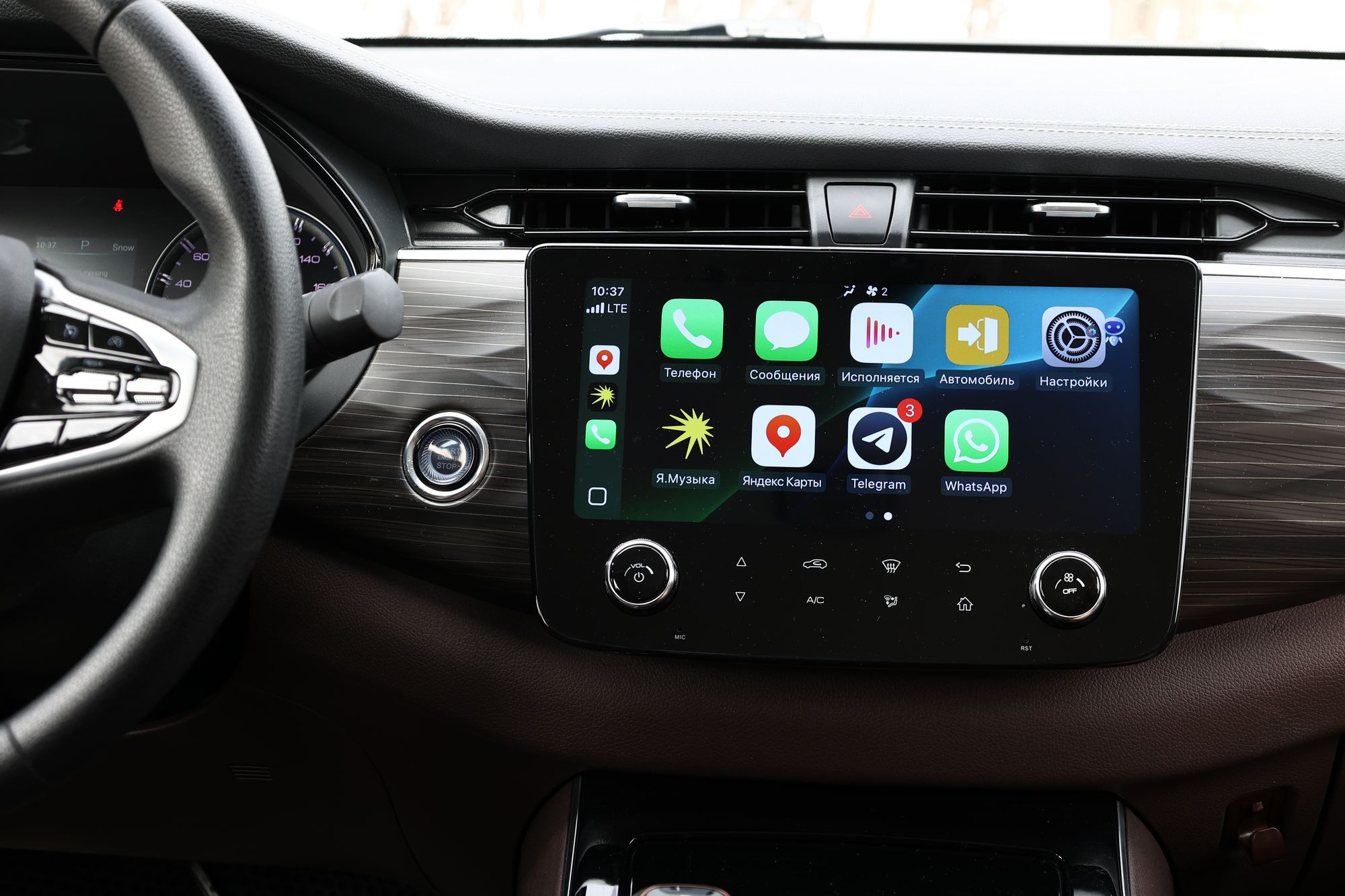 Мультимедийная система с 10-дюймовым экраном кажется до невозможности устаревшей, словно на панель прикрутили простейший планшет на Андроиде. Настройки непонятные, отзывчивость тачскрина оставляет желать лучшего. Потому и поддержка протокола Apple CarPlay, пусть и через приложение Zlink, поначалу выглядит как издёвка. Но нет, всё работает стабильно.