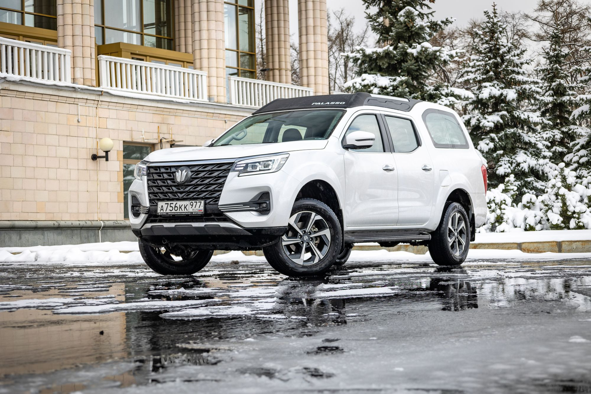 В Китае этот автомобиль дебютировал ещё в 2020 году как Dongfeng Palaso. Да, это не ошибка – вторую S ему зачем-то добавили по пути в Россию. Он унифицирован с японским пикапом Nissan Navara, причём абсолютно легально: пикап-хардтоп выпускается на совместном предприятии Dongfeng-Nissan. Не зря Ниссан упоминается (пусть и китайскими иероглифами) на багажной двери.