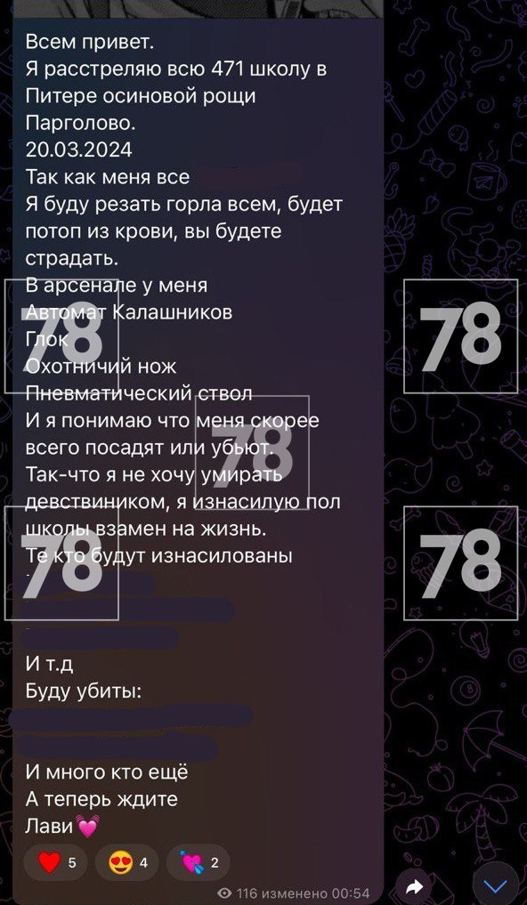 Учащийся школы 471 Кирилл (имя изменено) внезапно «постиг всю тяжесть бытия» (но не русский язык) и создал чат в Telegram с угрозами в адрес одноклассников и учителей.