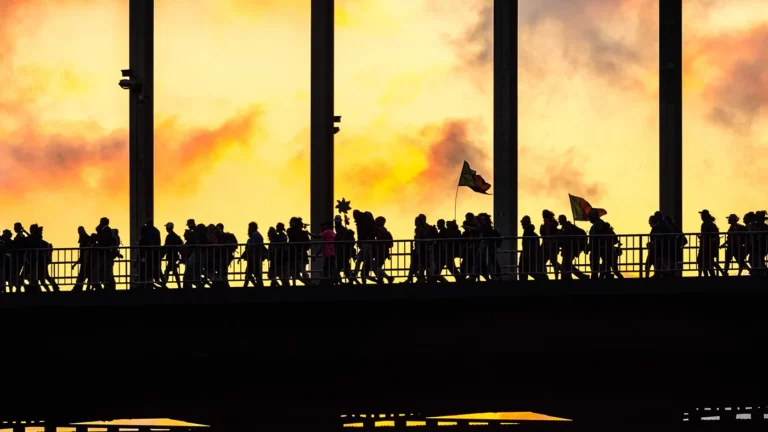 16 июля 2024 года, Неймеген, Нидерланды. Люди переходят мост через реку Ваал в первый день «Четырехдневного марша» (De 4 Daasgse) — «День Элста». Это мероприятие, которое позиционируется как самая масштабная пешая прогулка в мире, проводится ежегодно в третью неделю июля. В нынешнем году на дистанции 30, 40 или 50 километров зарегистрировались около 47 000 участников.