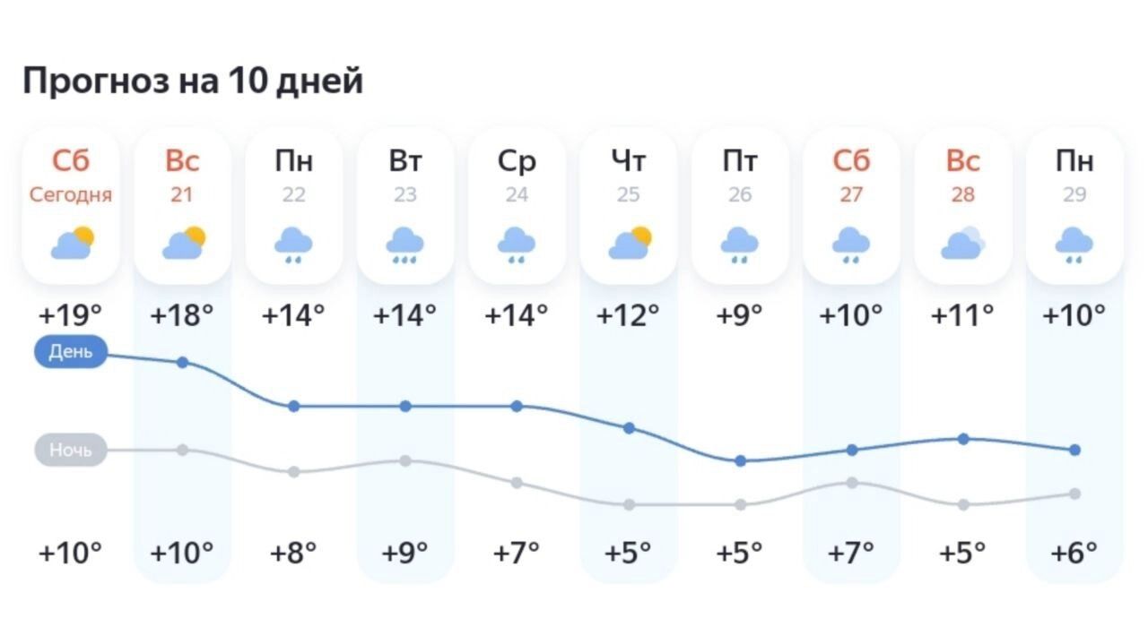 В Нижневартовске дождливыми станут вторник–среда и выходные дни, в остальное время будет пасмурно. Примечательно, что довольно тепло здесь будет до середины недели — +14…+18 градусов. Дневные температуры начнут падать с пятницы — до +9 градусов.