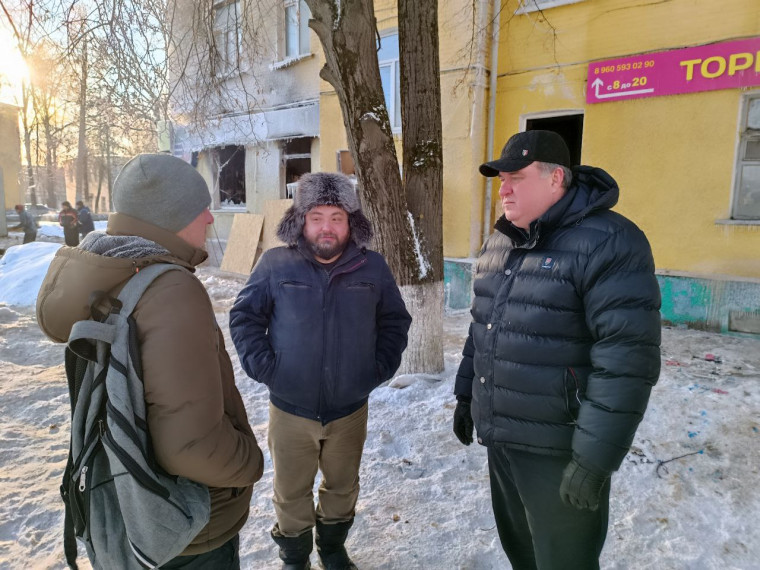 Глава администрации пообщался с пострадавшими и обсудил с руководителями профильных управлений сроки аварийно-восстановительных работ дома.