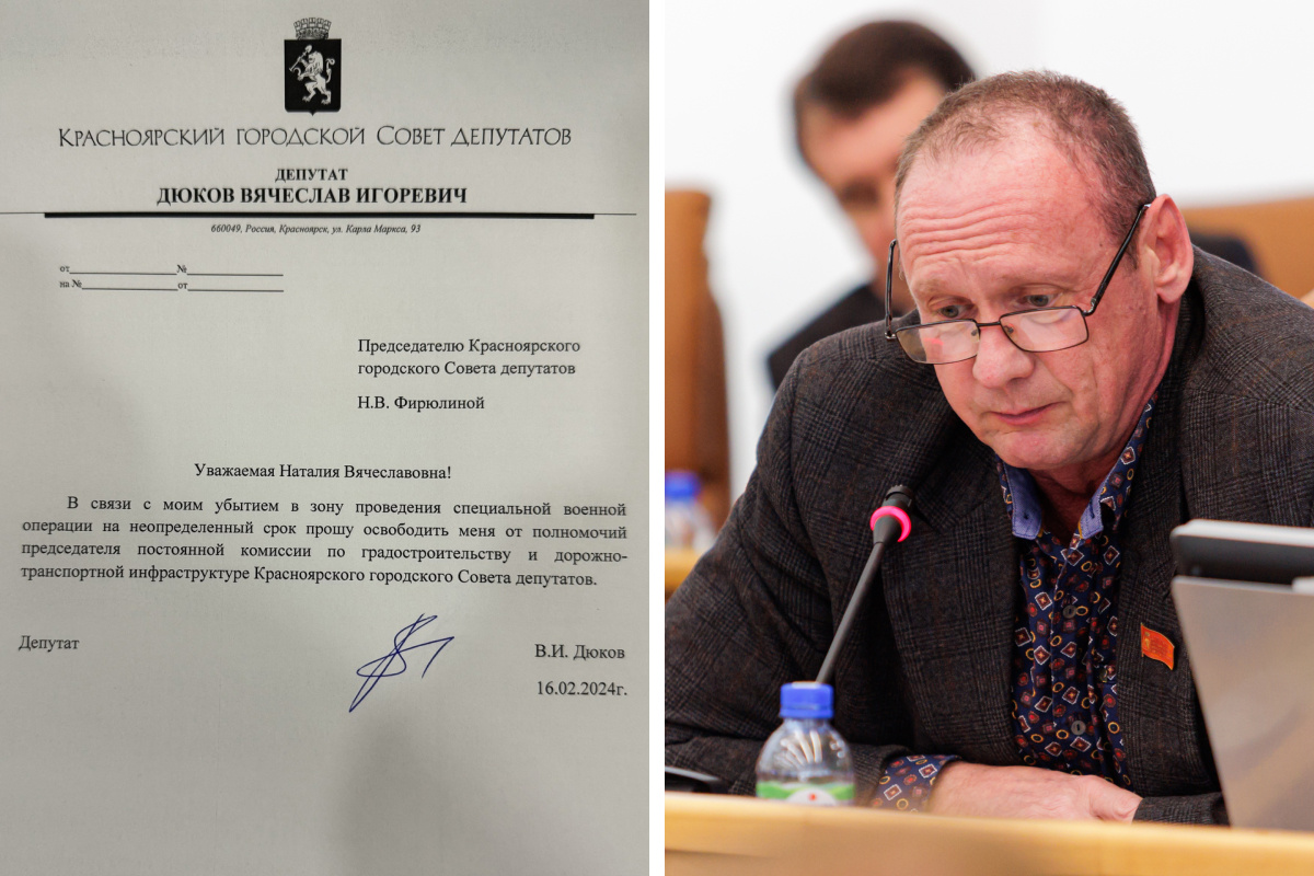 «В связи с моим убытием в зону проведения специальной военной операции на неопределенный срок прошу освободить меня от полномочий председателя постоянной комиссии по градостроительству и дорожно-транспортной инфраструктуре Красноярского городского Совета депутатов» — написано в документе.