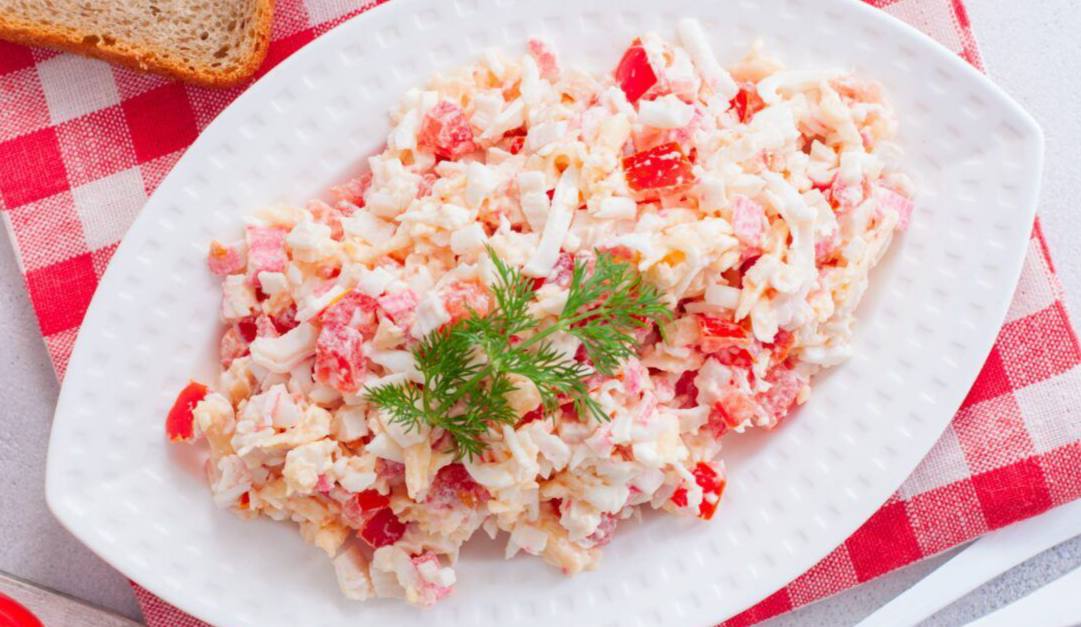 2․ Нарежьте томаты и крабовые палочки небольшими кусочками.