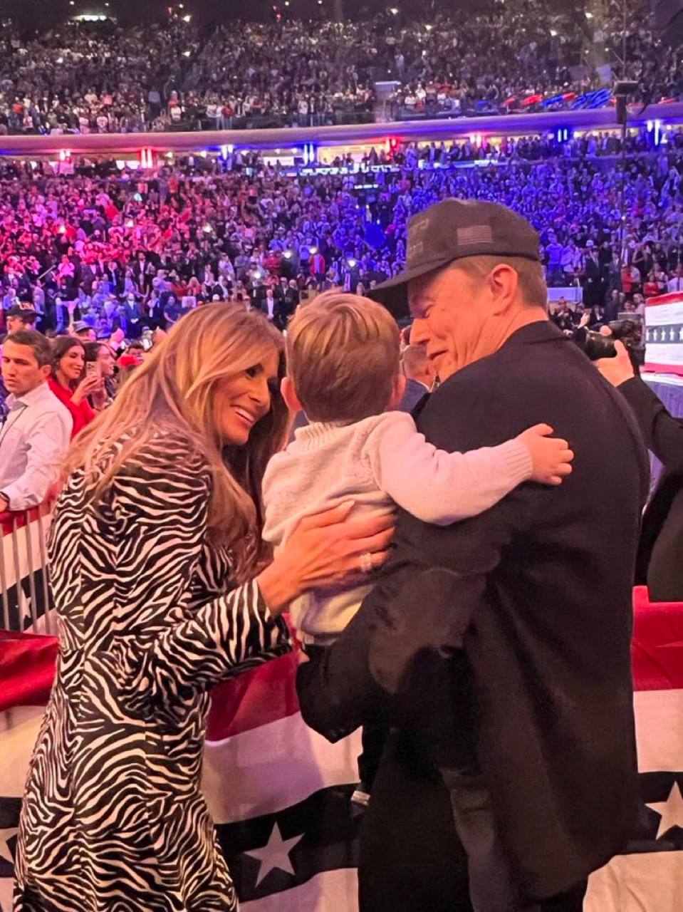 ✔️Илон Маск с сыном по имени X Æ A-Xii, или X (Икс), и Меланией Трамп на митинге Трампа