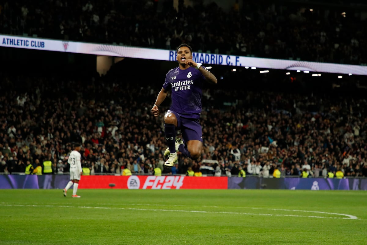 Hasta Kroos equivocaba la diana. Al Real le costaba salir sin que el Athletic necesitara más que colocarse en su sitio para recuperar la pelota. Y cuando no salía, el Madrid esperaba mientras el rival movía el balón, en una de esas noches contemplativas de bajas pulsaciones. Resultaba todo bastante intrascendente. Hasta que apareció Brahim, eléctrico transformador de partidos. En un momento en que no enlazaban tres pases, asomó entre líneas, aceleró y encontró a Rodrygo en el carril en el que faltaba Vinicius, sancionado. Desde ahí, el brasileño conoce una ruta que podría recorrer a ciegas, una diagonal que traza hacia dentro hasta que avista el área. Entonces tira. A la escuadra. Y marca. Como al Athletic.