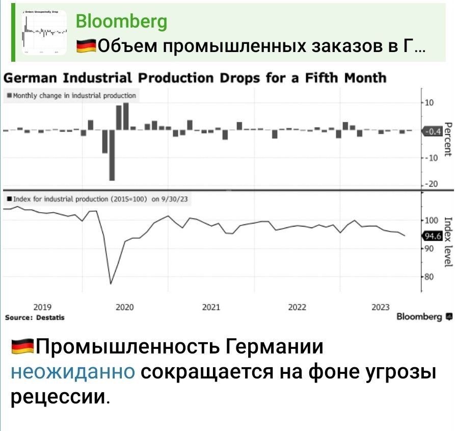 🇩🇪 Промпроизводство в Германии в октябре «неожиданно» снизилось на 0,4%