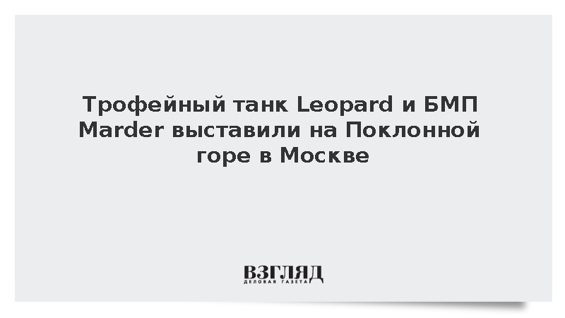 Трофейные немецкие танк Leopard 2 и БМП Marder, украинские Т-72 и БТР-80, подбитые российскими военными в зоне СВО, выставили на Поклонной горе в Москве. На обеих машинах немецкий флаг.