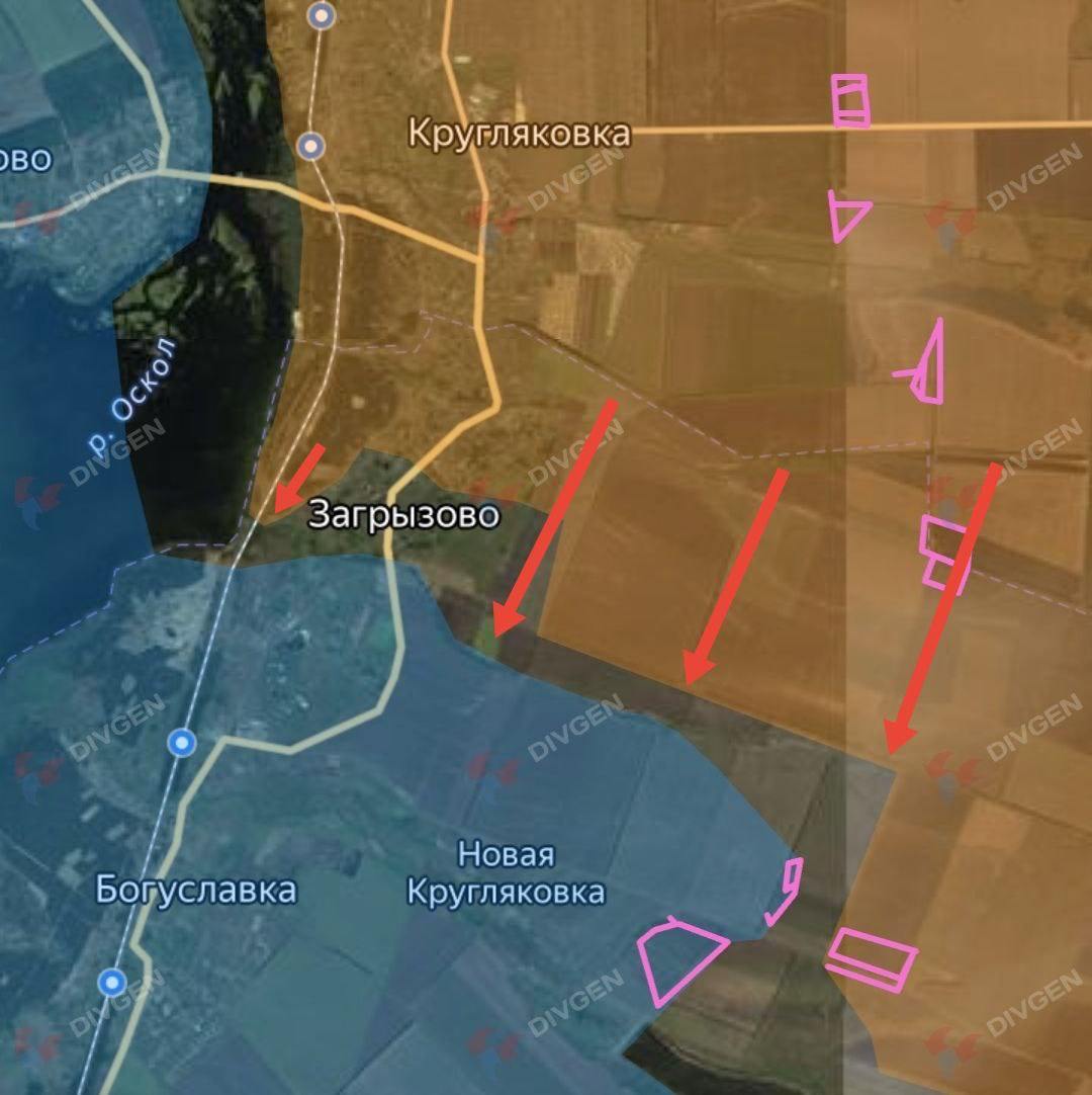 Подразделения ГрВ "Запад" продолжают наступление в направлении Богуславки вдоль реки Оскол и продвинулись по флангам Загрызово до 1,5 км участке по фронту около 6,5 км.