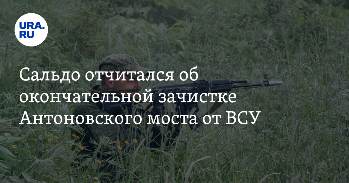 «Минувшей ночью военнослужащие группировки войск „Днепр“ окончательно зачистили территорию на левом берегу у Антоновского моста от ВСУ», — Сальдо в своем telegram-канале. Он добавил, что бойцы специальных подразделений осуществили неожиданную атаку из тыла, прибыв на лодках с реки. К трем часам ночи были взяты опорный пункт и гостиница, где находились украинские боевики.