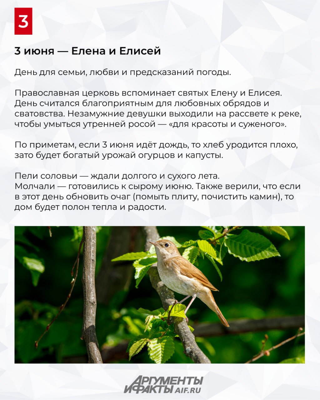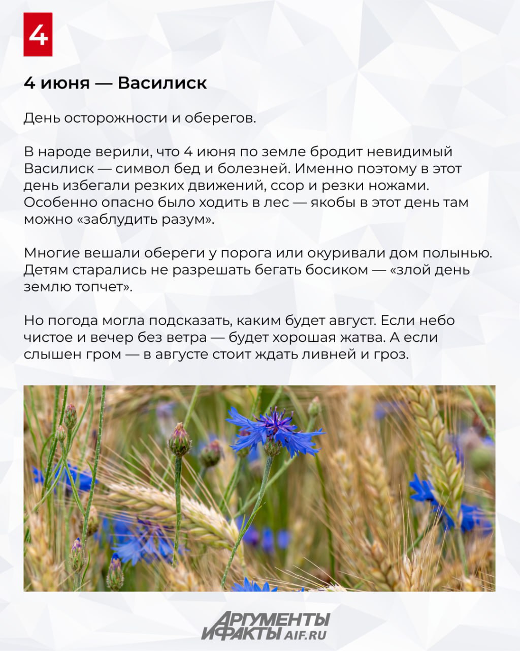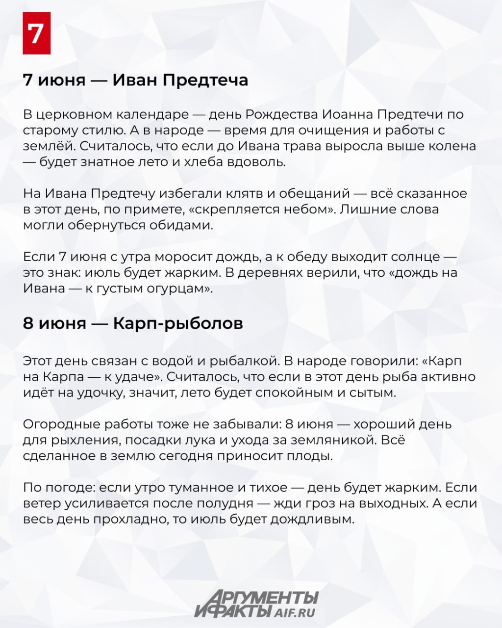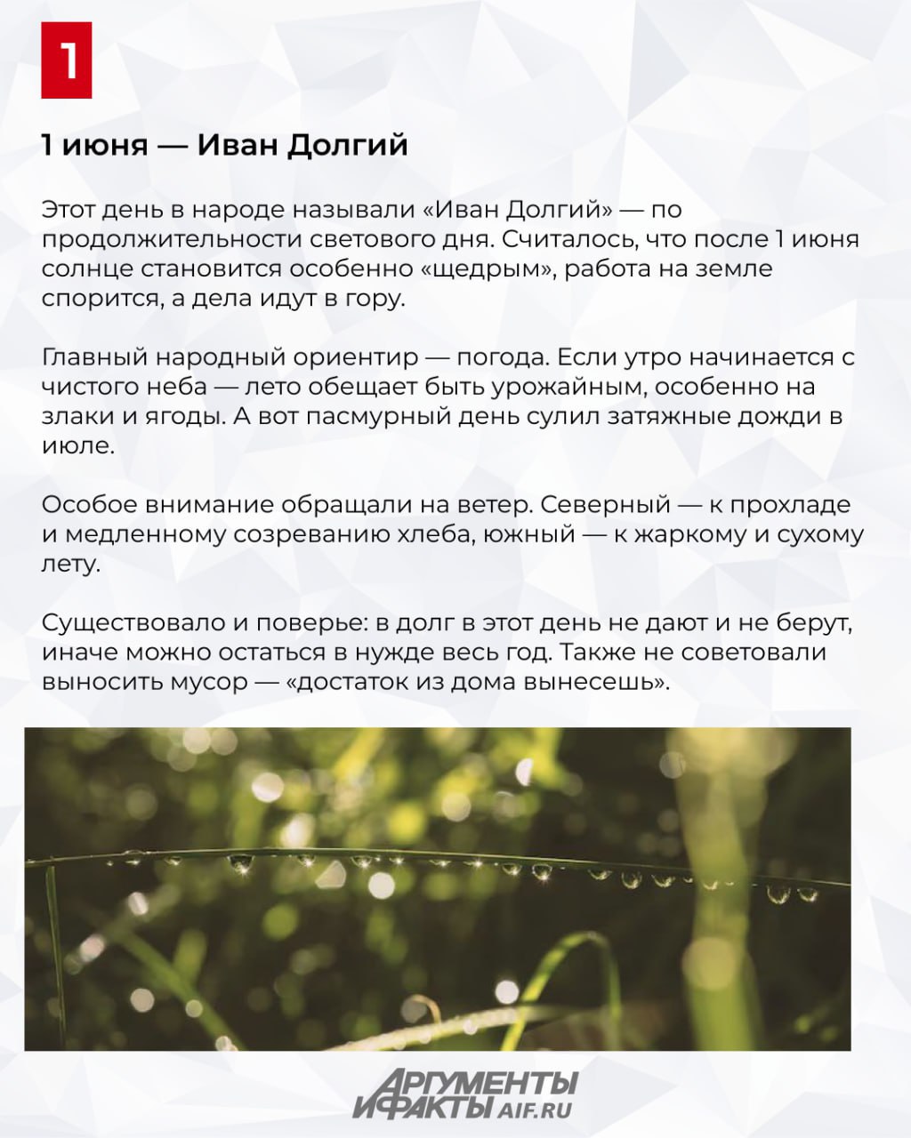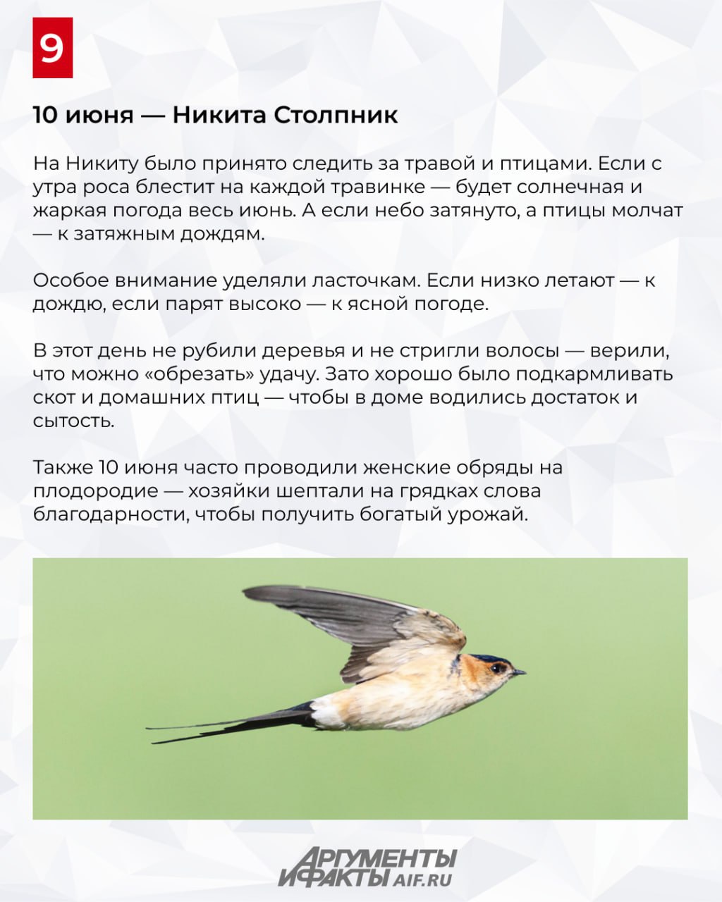 О народных поверьях с 1 по 10 июня — в наших карточках. Календарь народных примет на весь месяц — на сайте АиФ.