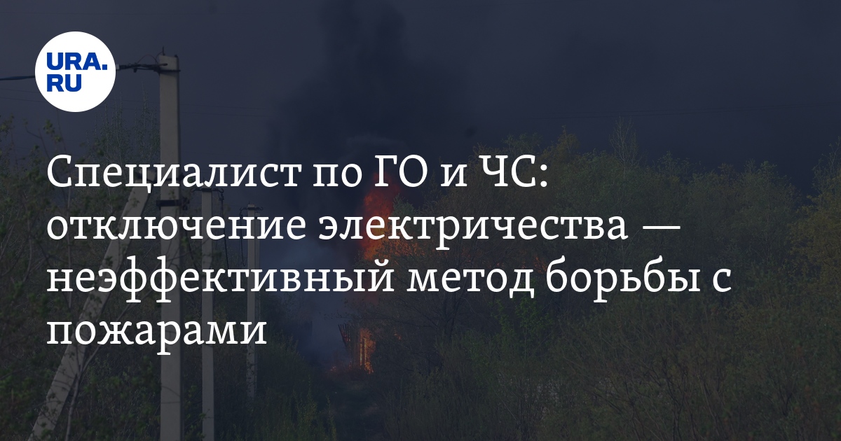 Отключение электричества является малоэффективным методом предотвращения пожаров. Об этом URA.RU сообщил специалист по гражданской обороне (ГО) и ЧС, подполковник запаса и независимый эксперт Университета «Синергия» Олег Бажанов.