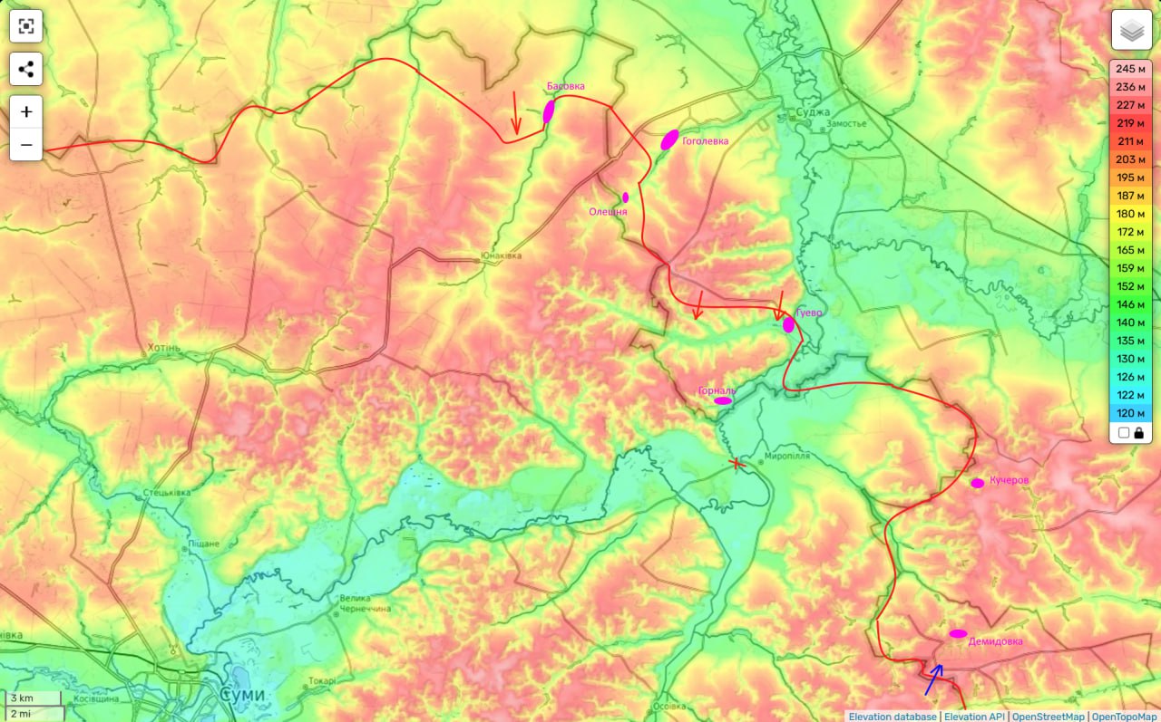 Но, как бы то ни было, противнику здесь уже особо ничего не светит. С другой стороны продолжается концентрация сил в лесах юго-восточнее Юнаковки и до Мирополья, что может быть, как попыткой концентрации сил для активной здесь обороны, так и возможных контратак противника.