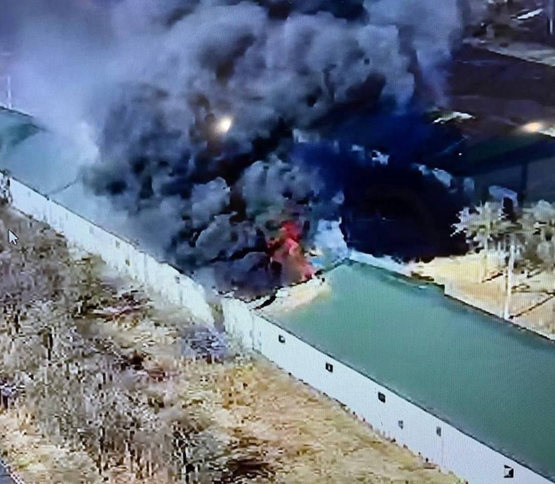 Об этом сообщила местная военная администрация. Отмечается, что также загорелись складские помещения производственного предприятия.
