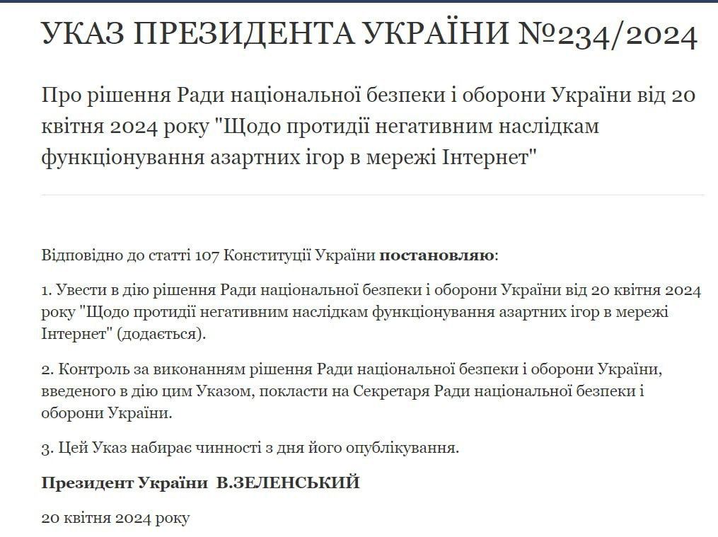 Президент ввел в действие решение СНБО по ограничению онлайн-казино