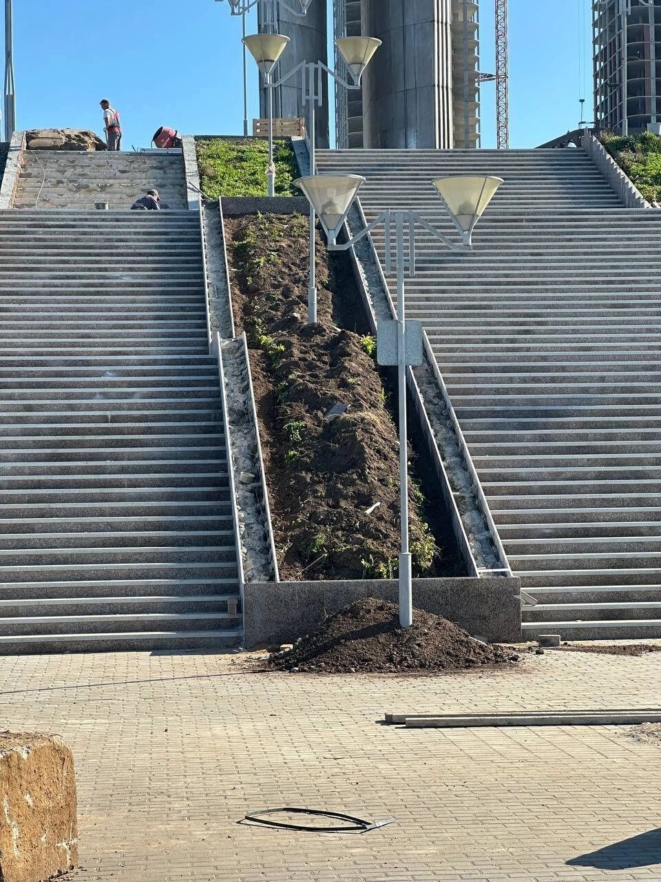 Напомним, о начале работ по облицовке ступеней на эспланаде ниже улицы Максима Горького в Ижевске сообщал в конце июля глава города Дмитрий Чистяков. Тогда объекта был готов примерно на 40%.