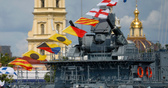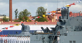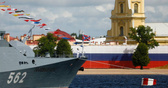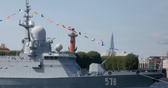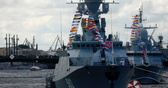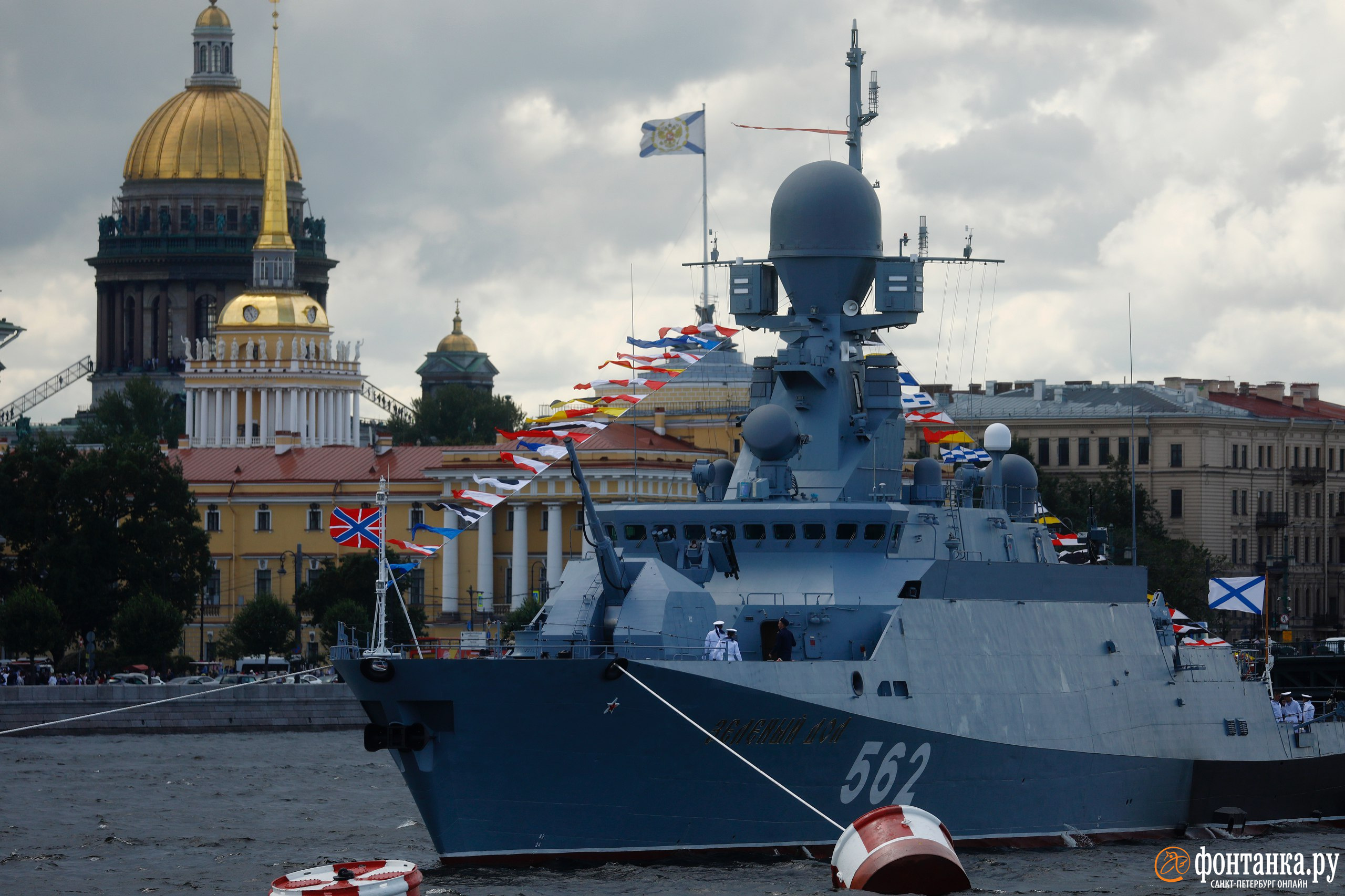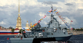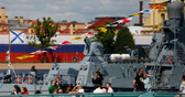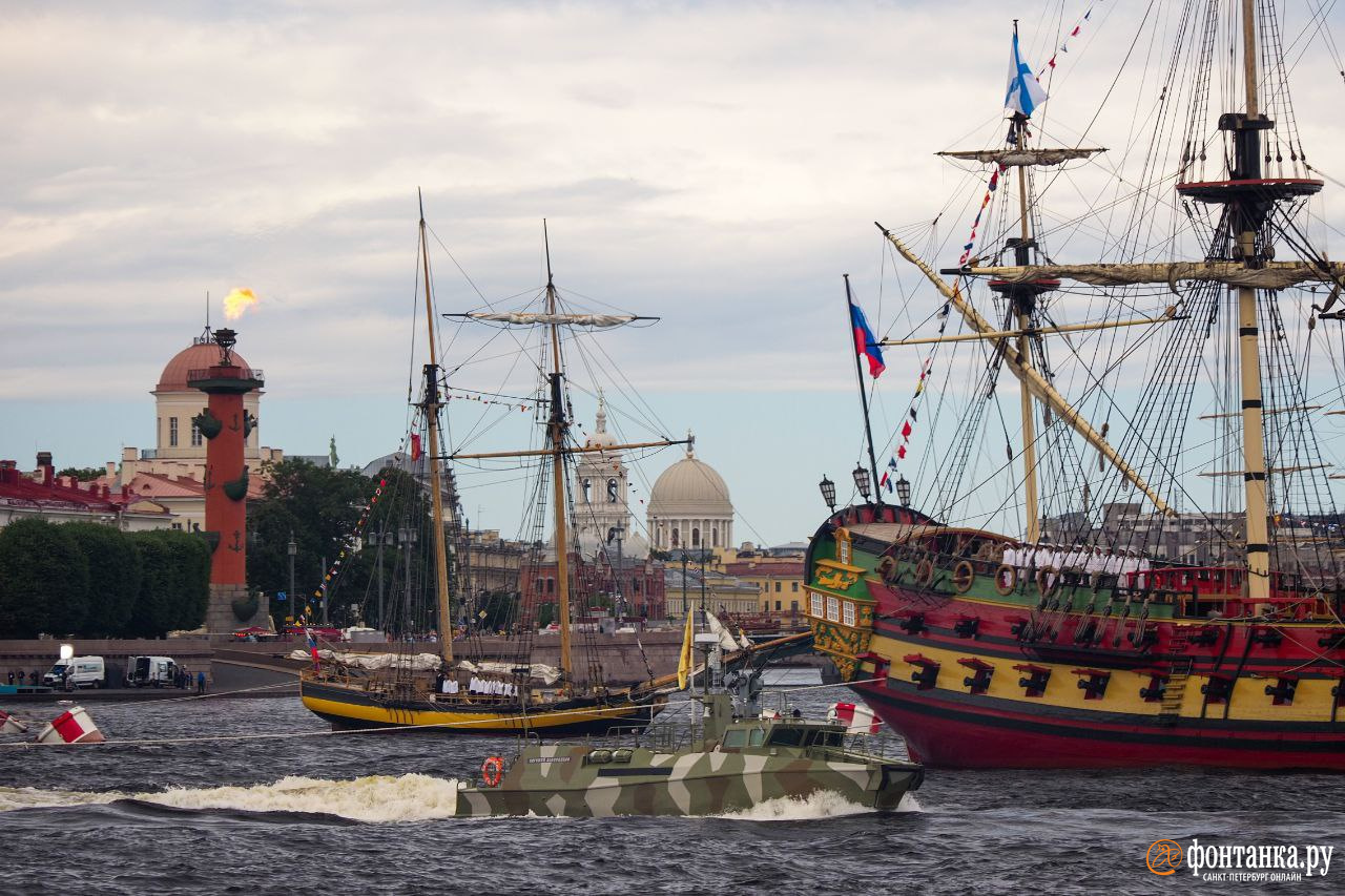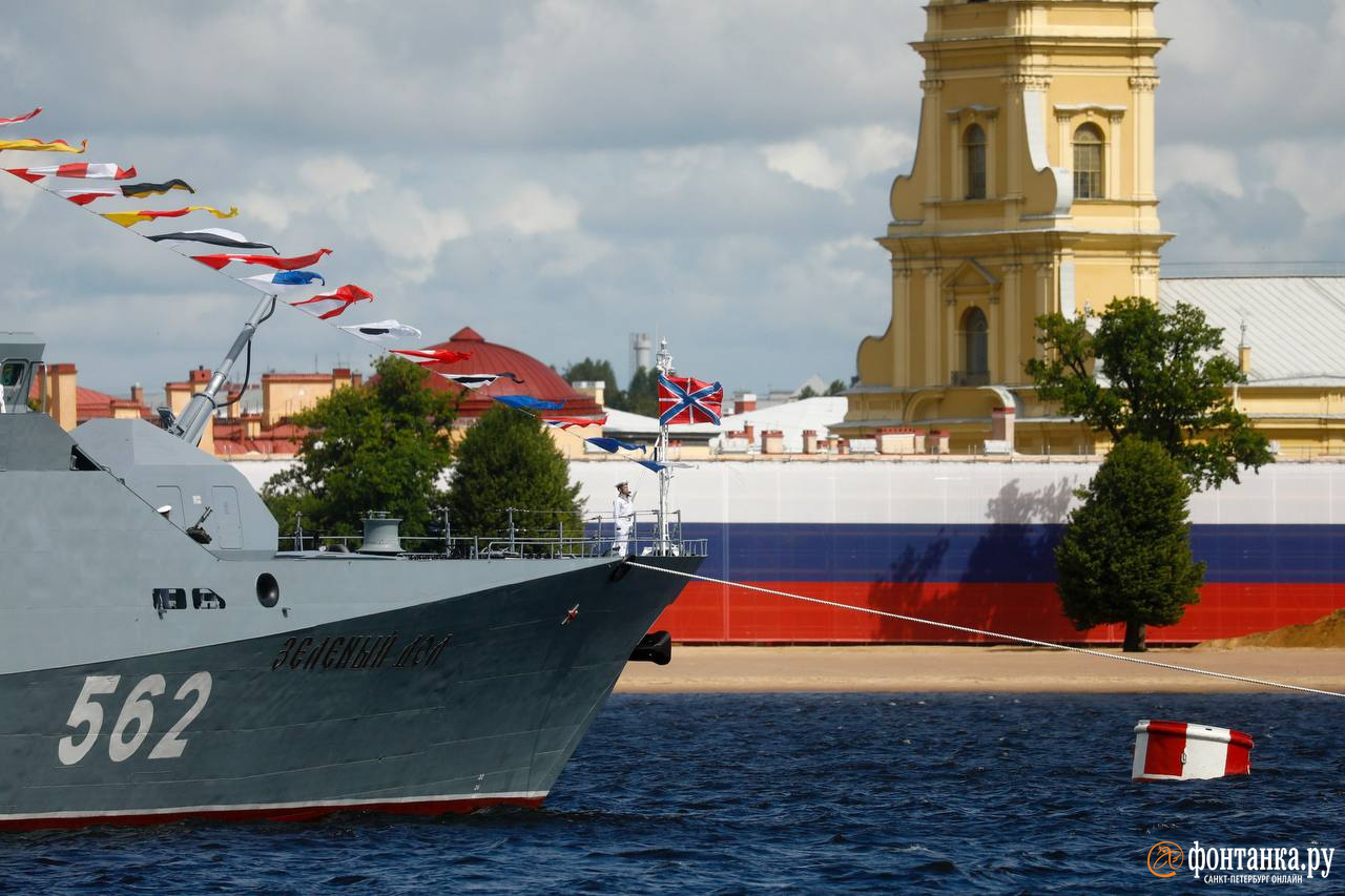 Петербуржцы и гости города последние две недели могут наблюдать военные корабли на Неве. Это участники парадного строя, который Владимир Путин будет обходить на президентском «Буревестнике». Главу государства будут приветствовать экипажи малых ракетных кораблей (мрк) «Буря» и «Зеленый дол». Первый сейчас находится на госиспытаниях, после которых его передадут Балтийскому флоту, а второй — черноморец — до этого дважды участвовал в петербургских парадах, в динамической части. Малые ракетные пришвартованы за Дворцовым мостом, ближе к Петропавловской крепости. Возглавляет парадный строй уже привычный к парадам ВМФ парусный линейный корабль «Полтава». Между Дворцовым и Благовещенским мостами стоят две подводные лодки («великомученица» Северного флота «Санкт-Петербург» и ее сестра по проекту 667 «Великие Луки»), а по центру — прямо напротив Сенатской площади — сторожевой корабль Балтийского флота «Неустрашимый».
