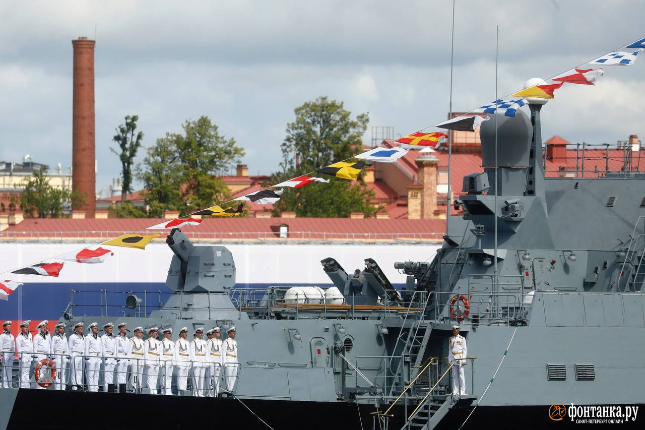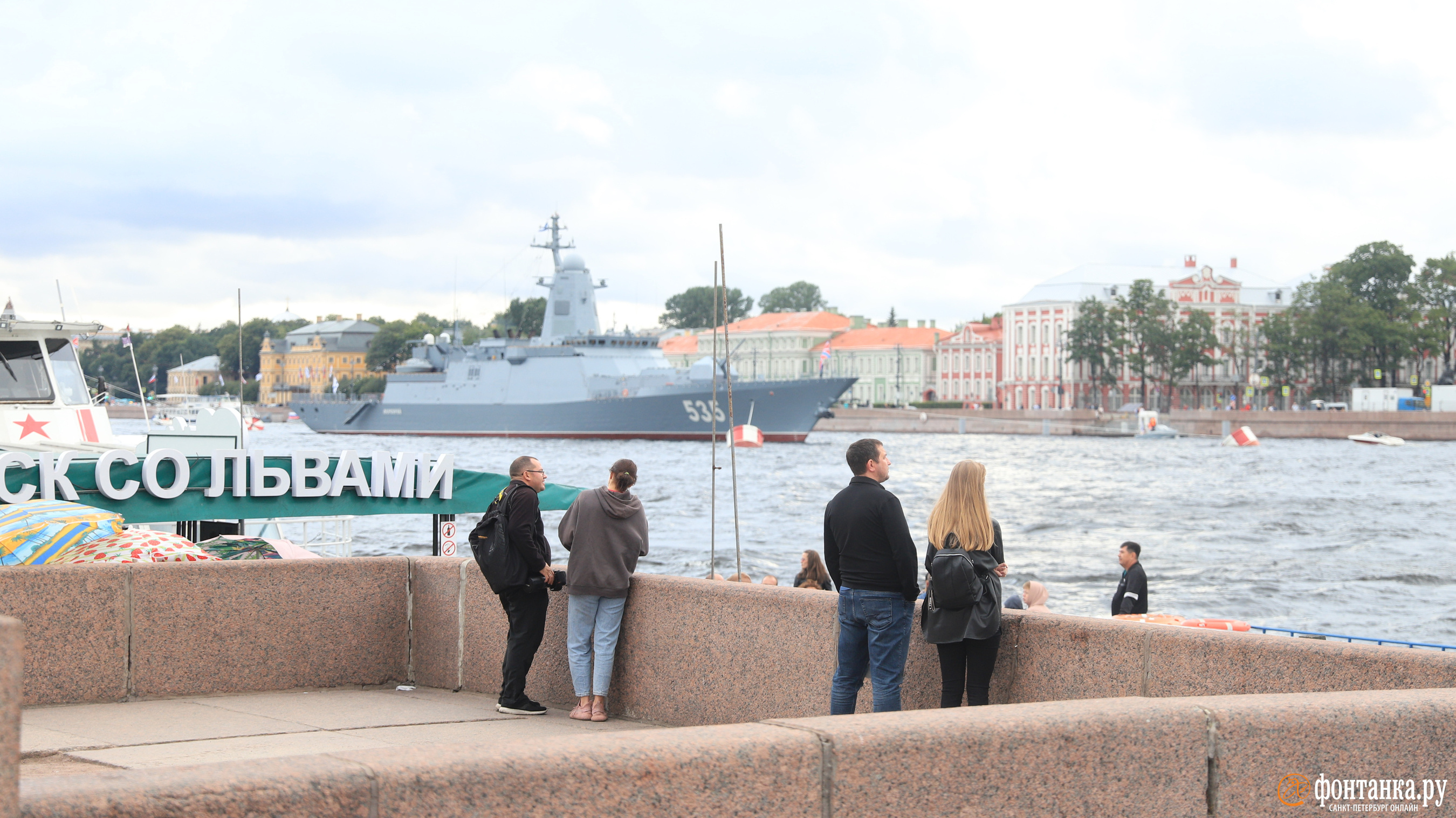Главный военно-морской парад в Петербурге начнется 30 июля в 11:00. В нем задействованы около 3000 военнослужащих и 29 кораблей, катеров и подлодок ВМФ России. В Смольном накануне называли большую цифру — 41 — но такое количество складывается из катеров ФСБ и МЧС, а также гражданских парусников.