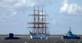 На Большом Кронштадтском рейде в этом году тоже без «вау-эффекта»: малый ракетный корабль «Мытищи», корвет «Бойкий», дизельная подводная лодка «Дмитров». «Мытищи» — это тот же проект (22800 «Каракурт»), что и «Советск», и «Буря». С «Советском» «Мытищи» ровесники. Корабль был на Главном военно-морском параде в 2019 году, через год после вхождения в состав Балтийского флота. Подводная лодка «Дмитров» — матерая, «живет» в Кронштадте (порт приписки ЛенВМБ). За 37 лет своей жизни трижды участвовала в парадах, прошла четыре ремонта и одну модернизацию. К слову, тоже кинозвезда — снималась в фильме «Не валяй дурака». Компанию военно-морским составляют парусные барк «Седов» и корабль «Мир».