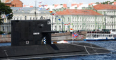 Завершает кильватерный строй дизель-электрическая подводная лодка «Уфа». Эту серию «Адмиралтейские верфи» сейчас достраивают для Тихоокеанского флота. «Уфа» была передана ТОФу в конце прошлого года. Рассказывая о проекте 636.3 «Варшавянка», журналисты любят добавлять в заголовок «Черная дыра» для НАТО, мол, «за свою высокую скрытность подлодки получили такое прозвище на Западе». В Петербурге проект «Варшавянка» известен больше уголовным делом о хищении почти 400 миллионов рублей и загадочной смертью одного из фигурантов.