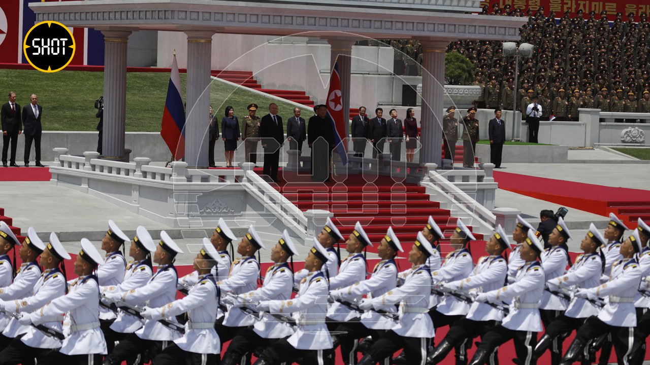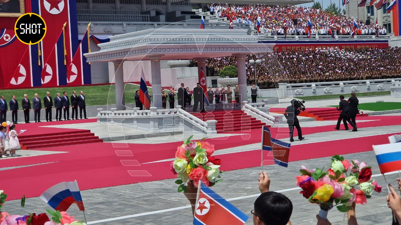 Корреспондент SHOT рассказал, что российскую делегацию приветствовали парадом и фейерверком. А люди скандировали: "Приветствуем Путина! Русско-корейская дружба, дружба и сплочённость!"